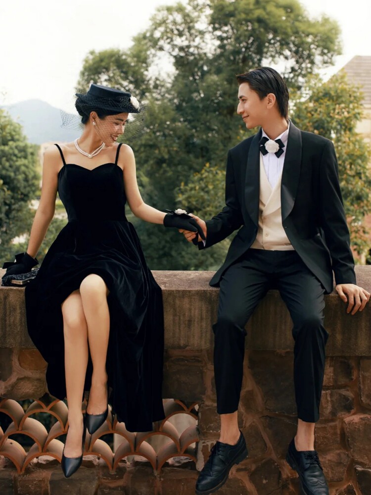 Hepburn French Velvet Couple Photography Brigade Take Real Hang with Retro Wedding Style Theme Clothing