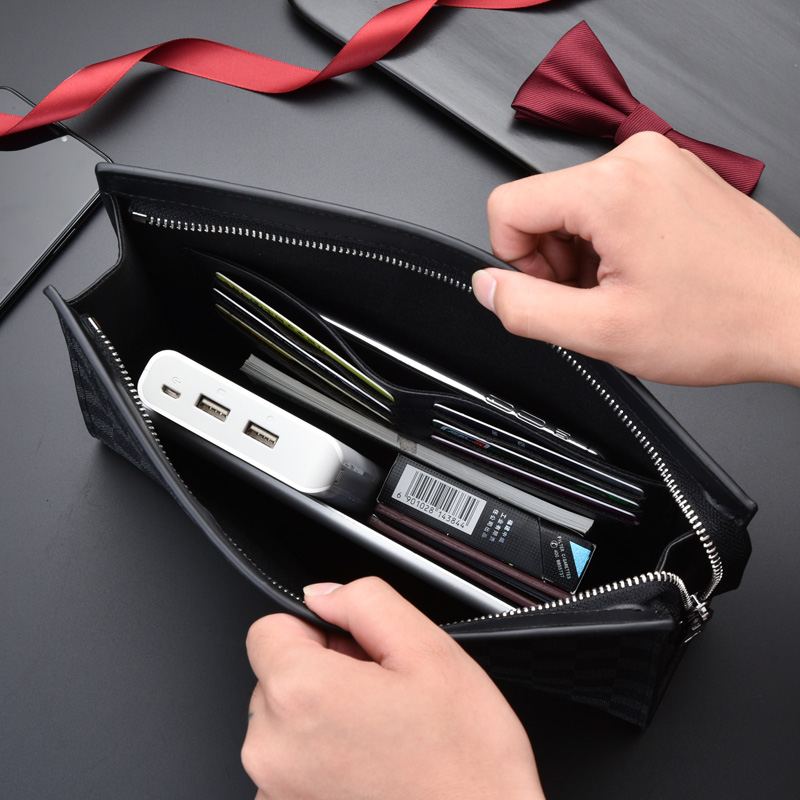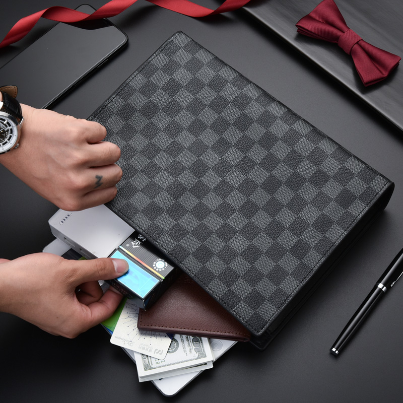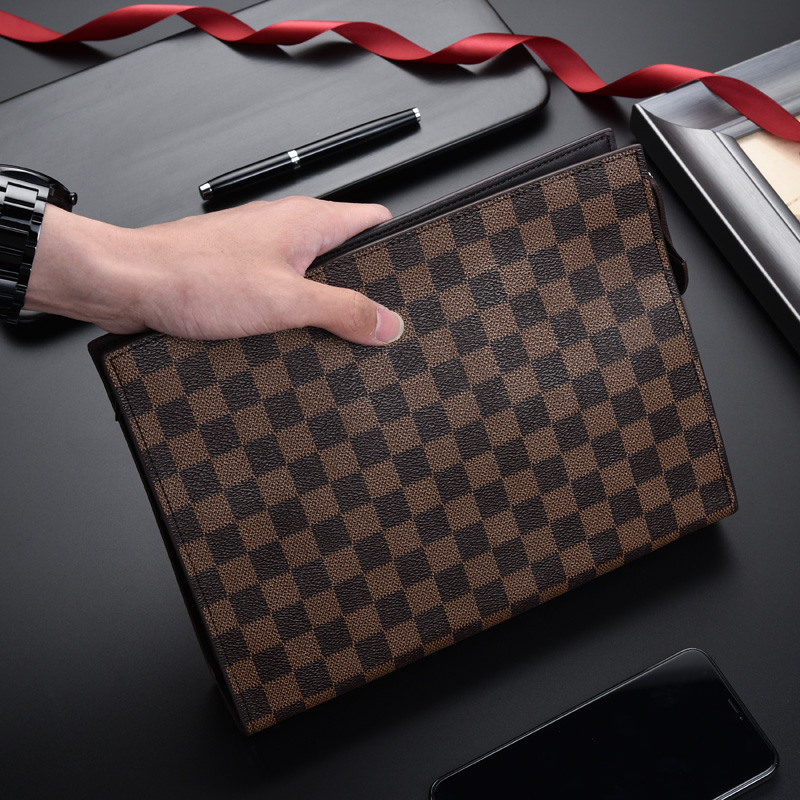 Handbag Men's Clutch Checkerboard Plaid Fashion Trendy Men's Hand Grab Bag Clip Bag Large Capacity Business Casual Handbag