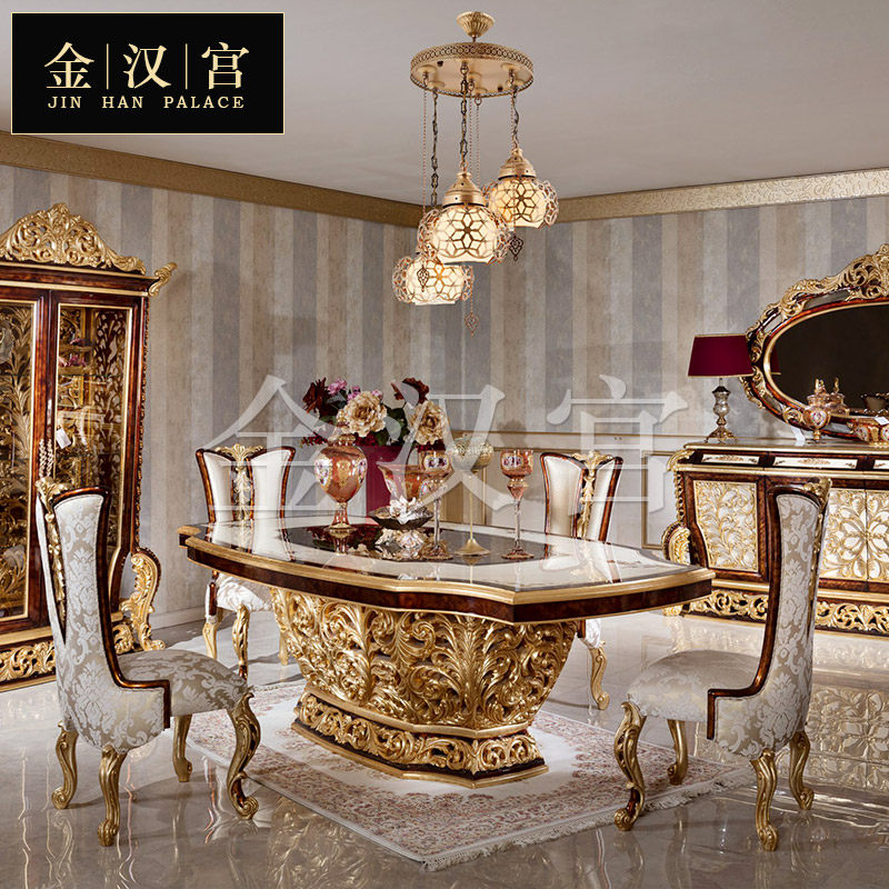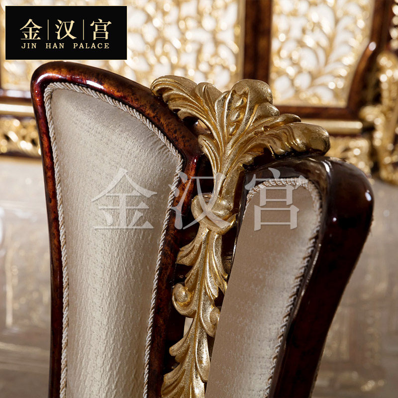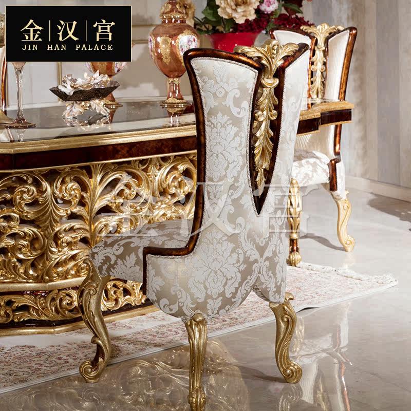 Italian European-style luxury fabric dining chair mansion French villa solid wood gold leaf dining table and chair combination furniture customization