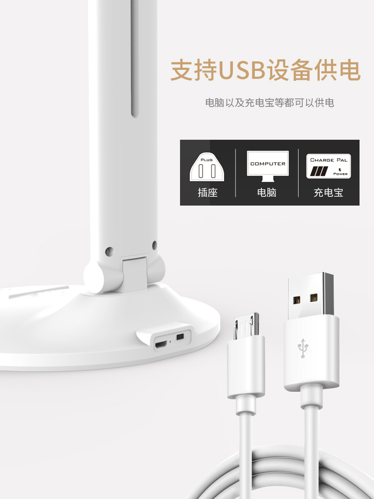Desi learning special desk lamp LED charging eye protection plug-in dual-use dormitory bedside student desk folding lamp