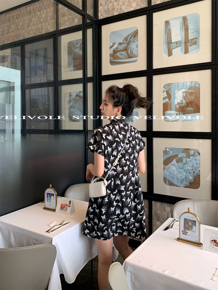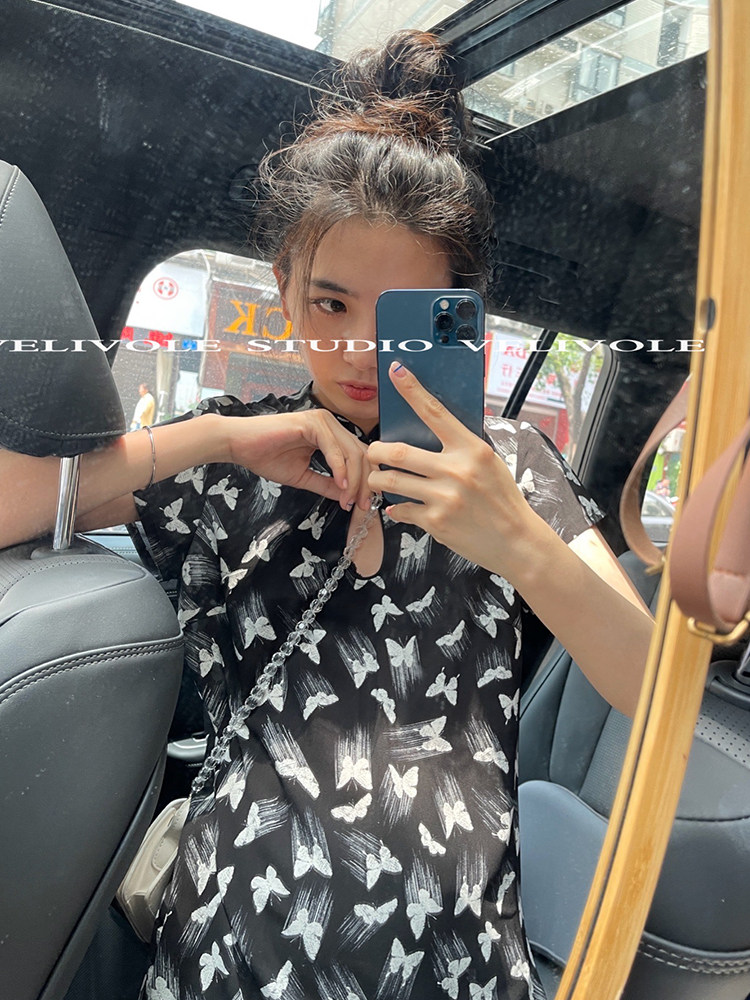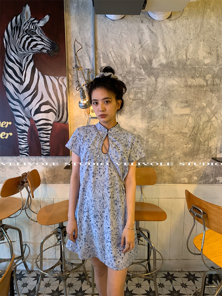 VELIVOLE Pear Vortex China Wind Paper People Improved Qipao Ocean Dress Summer Retro Young Broken Flowers Skirt