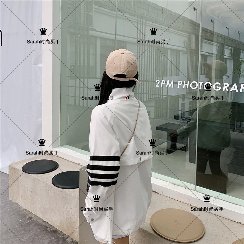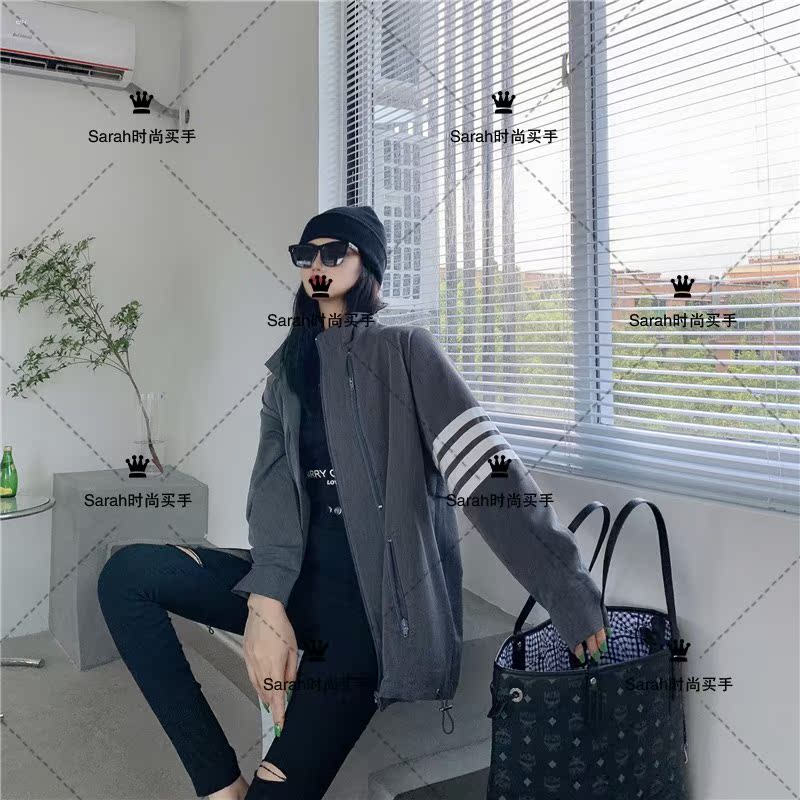 Thom Browne 2022 autumn and winter TB asymmetrical zipper jacket windbreaker men's and women's baseball jacket - Taobao