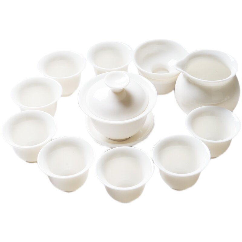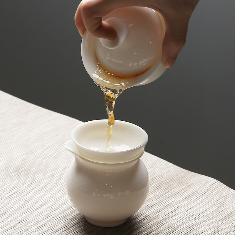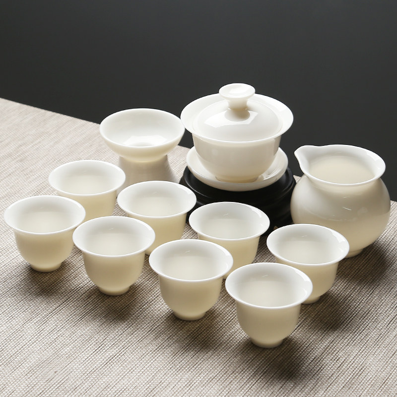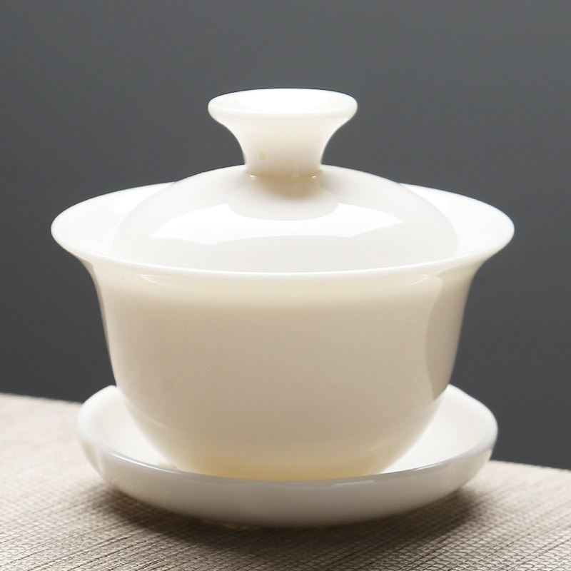 Defied Chinese-style ceramic goat fat jade qigong tea with bright white style tea cup tea leaking lid bowl light extravagant whole set of gift boxes