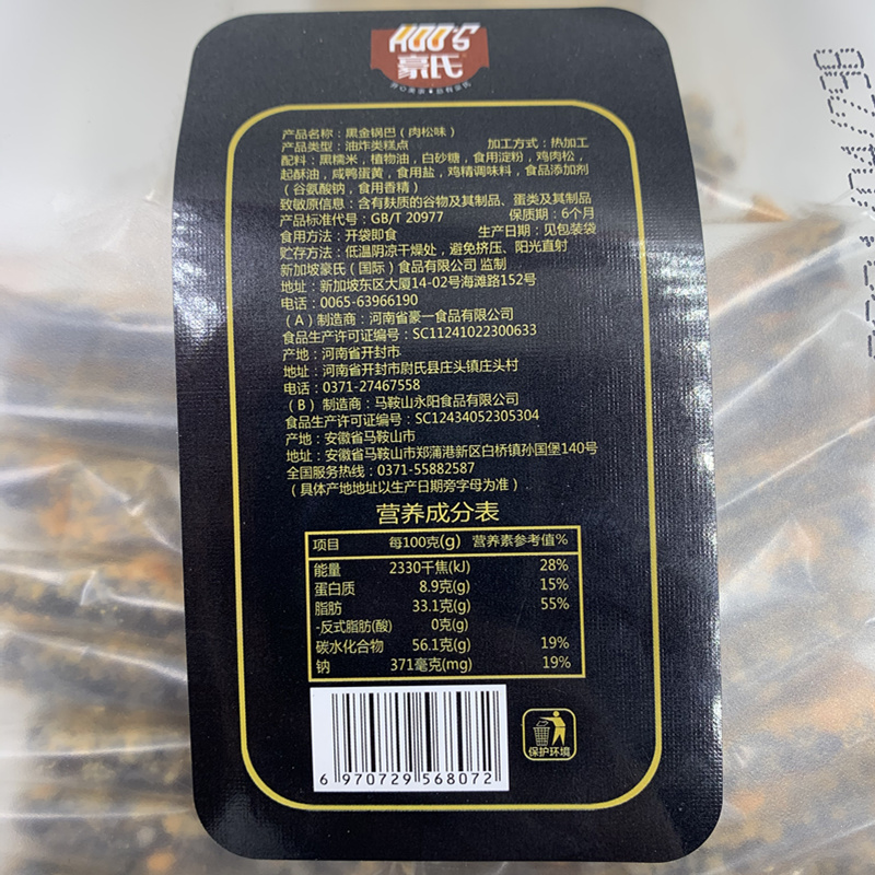 Howe's Black Gold Rice Crust 350g Packed with Meat Floss Black Rice Crispy Black Glutinous Rice Salty Egg Yolk Crispy Office Snacks
