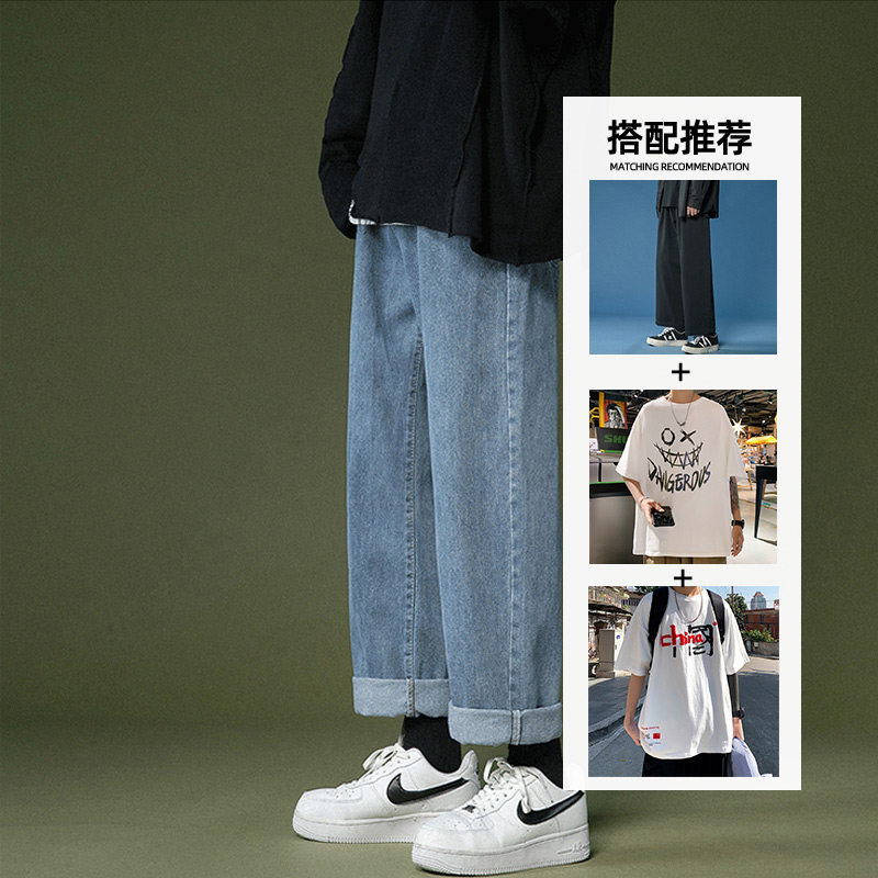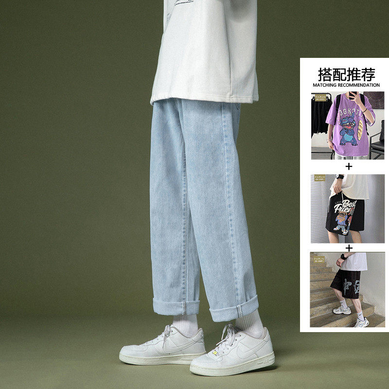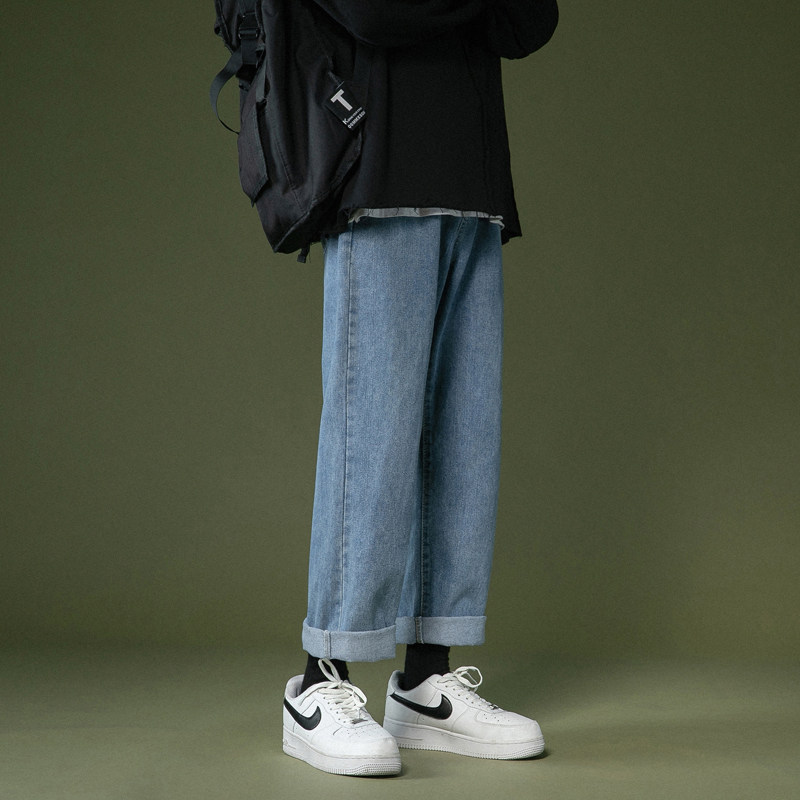 Light-coloured jeans Men's spring autumn loose straight drum pants Chains Port Wind size 90% Summer casual pants Fat