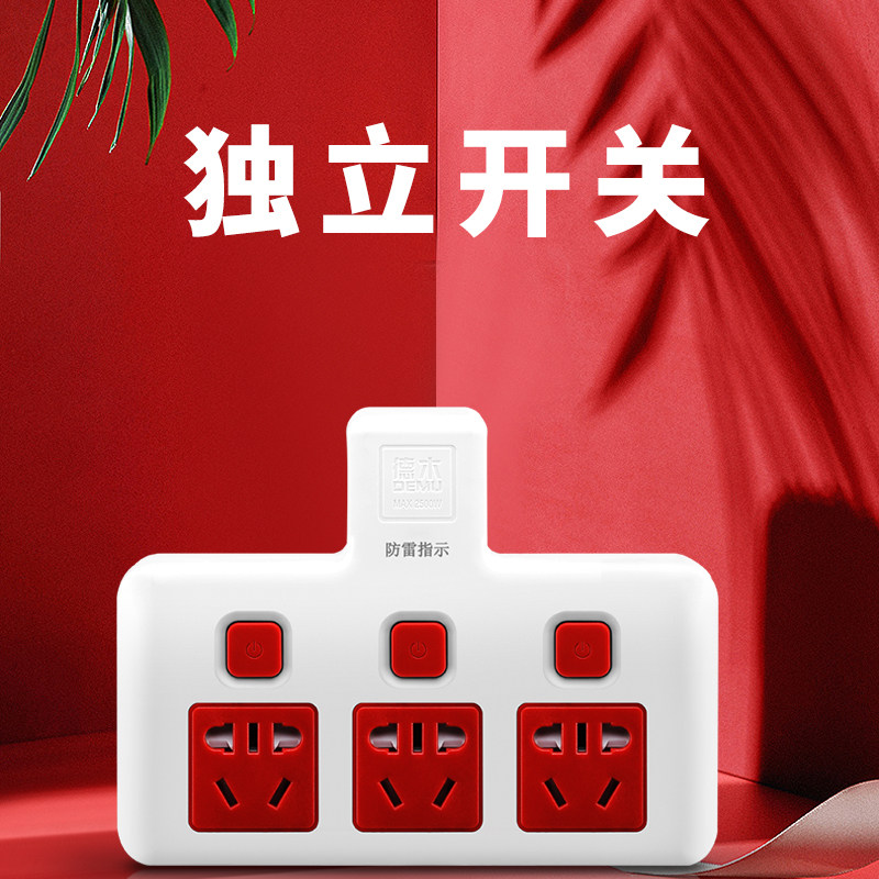 Dewood converter 10A multifunction One-turn multi-extension cord Wireless lightning protection porous kitchen Home independent switch