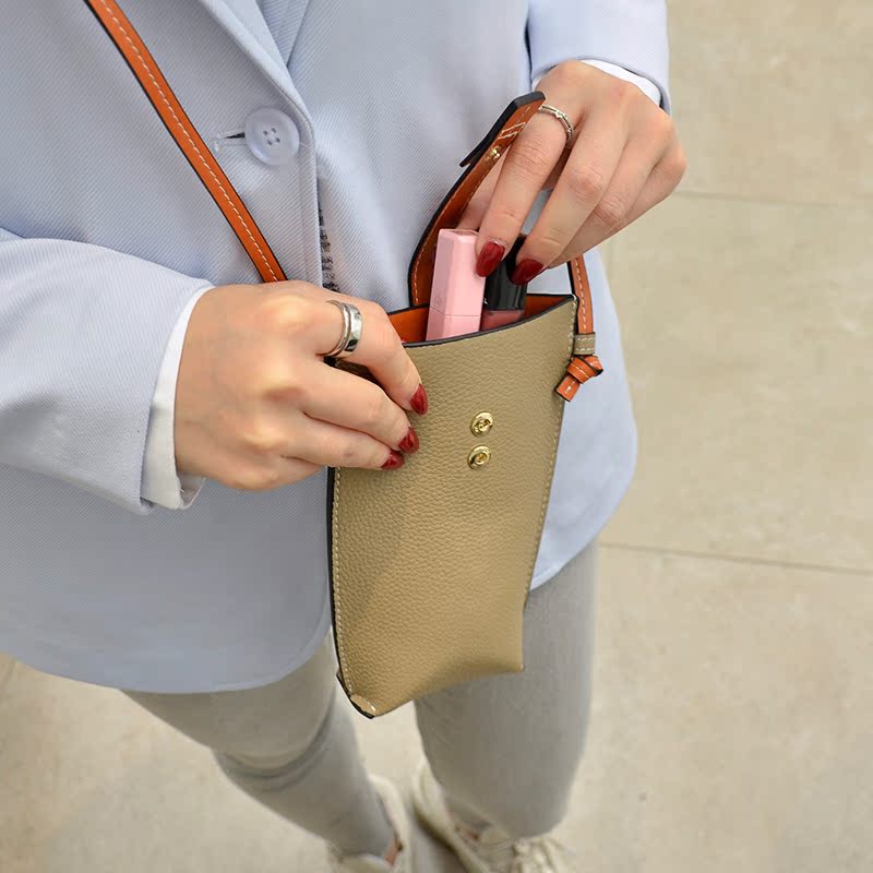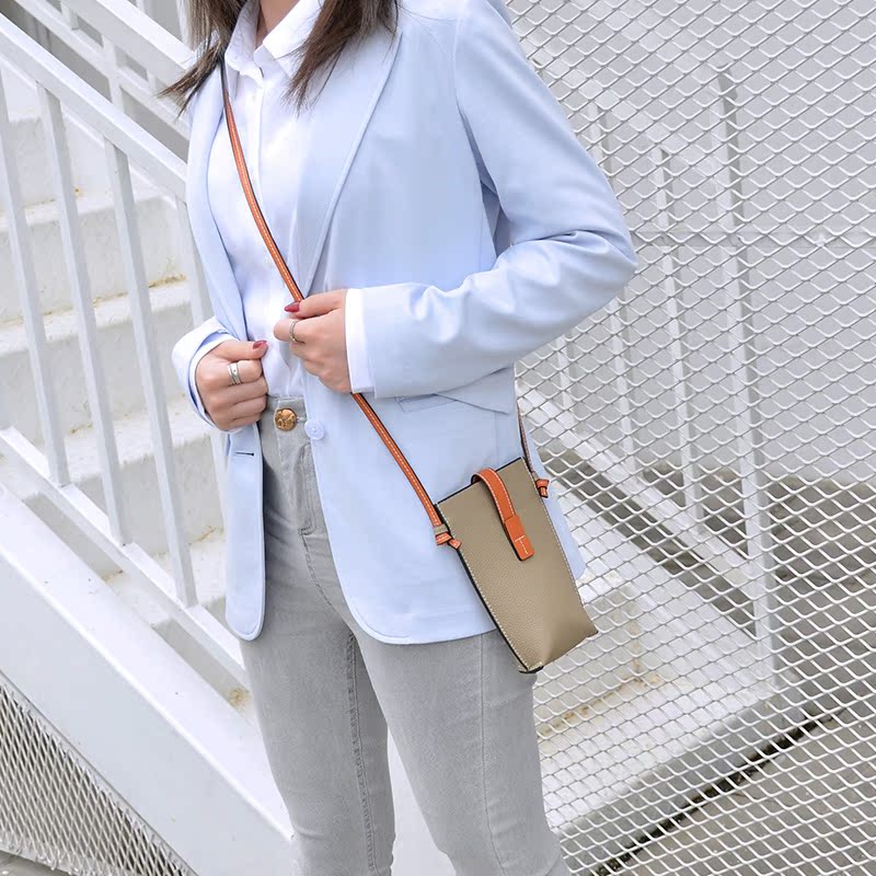 2022 new light phone bag women's head layer of cow leather minimalist skew satchel fashion mini-release mobile phone small bag