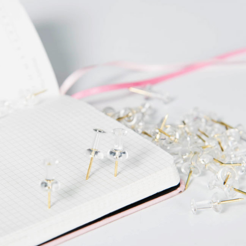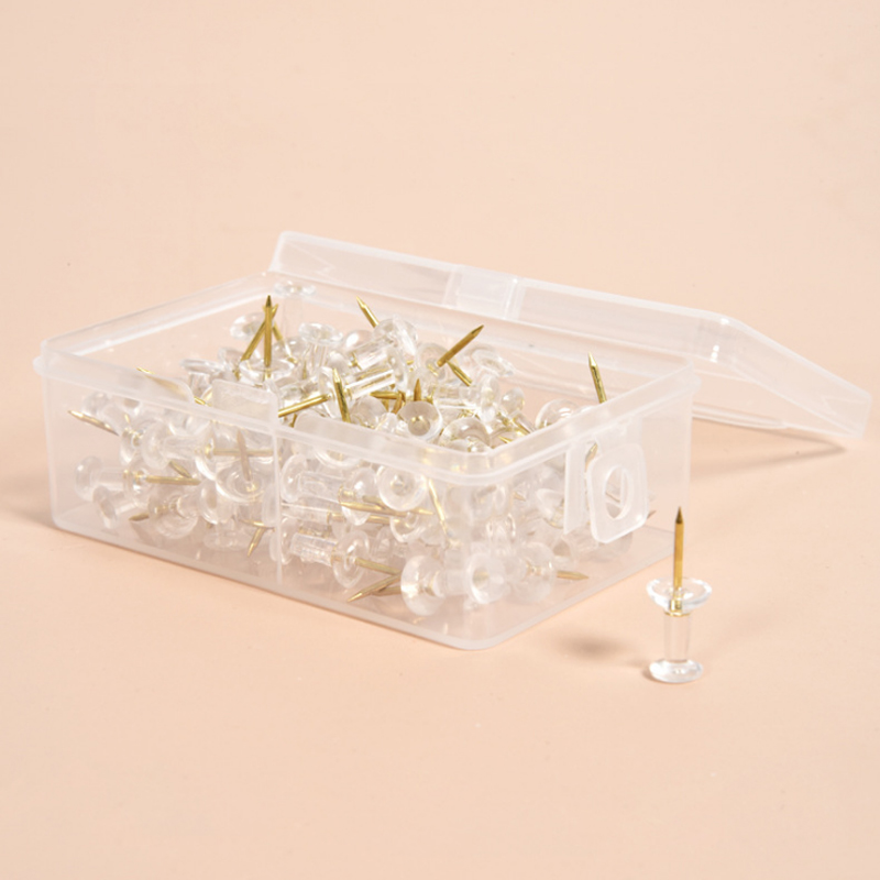 100 packs of transparent gold I-shaped nails cork board photo wall decorative thumbtacks big head art nails map markers