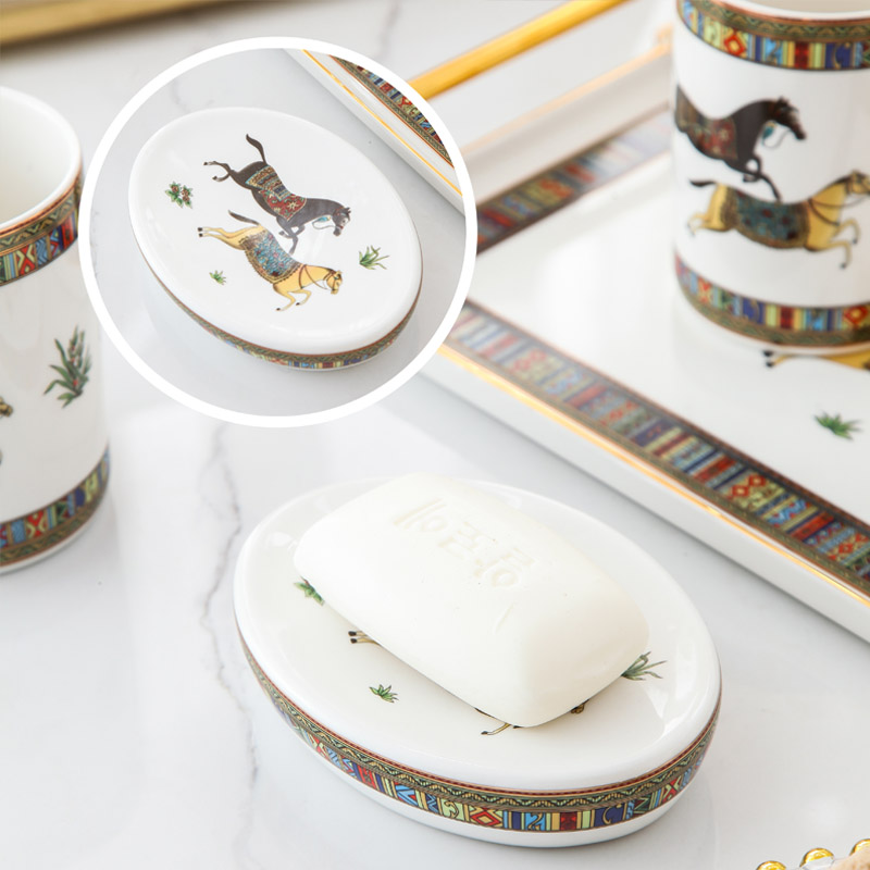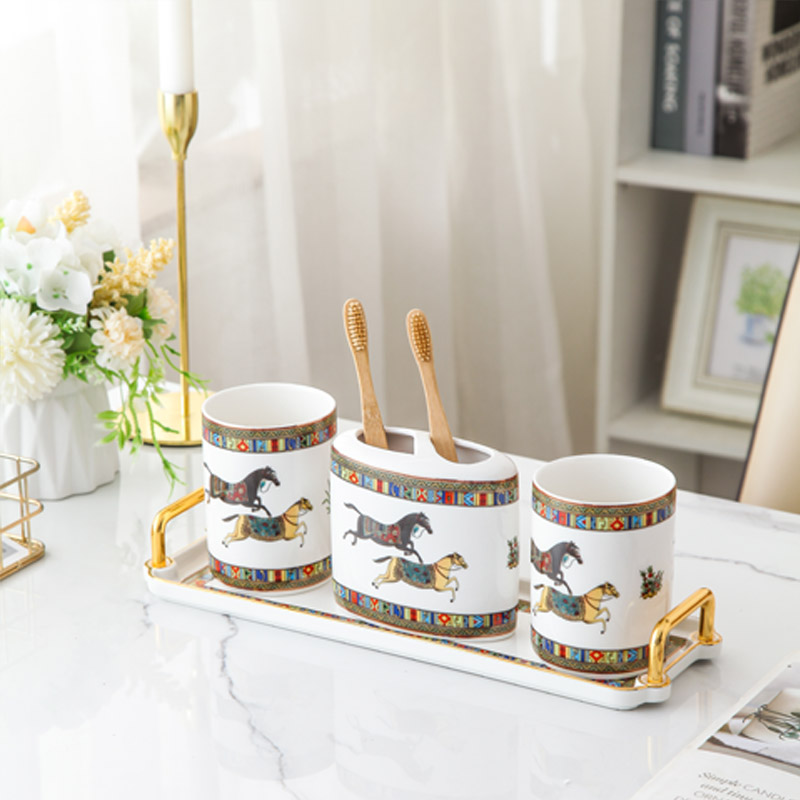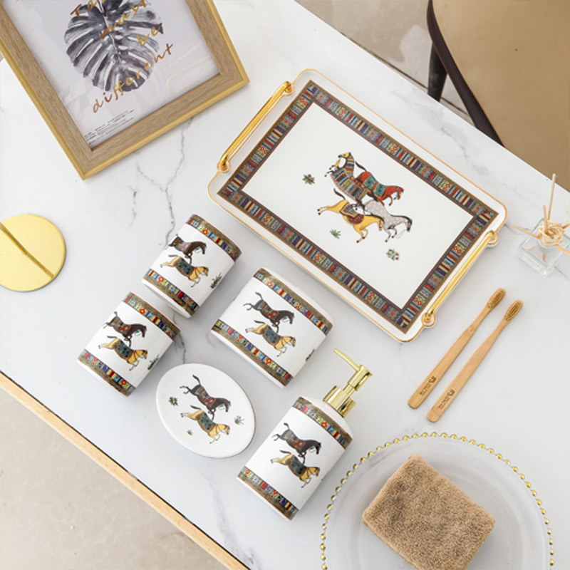 Horse figure bathroom six-piece set with handle Horse figure bathroom four-piece set with handle (small tray)