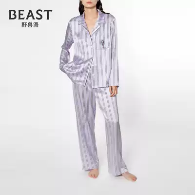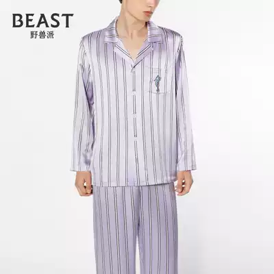 THEBEAST Fauvism Sea is your purple striped print silk pajamas home clothes for men and women to wear