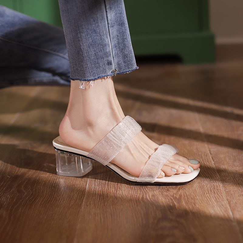 Slippers Female Outwear Fashion Comfort Summer Retro Transparent Heel Superior 100 Hitch Naked Color Flip-flops Heel Sandals Sandals Shoes