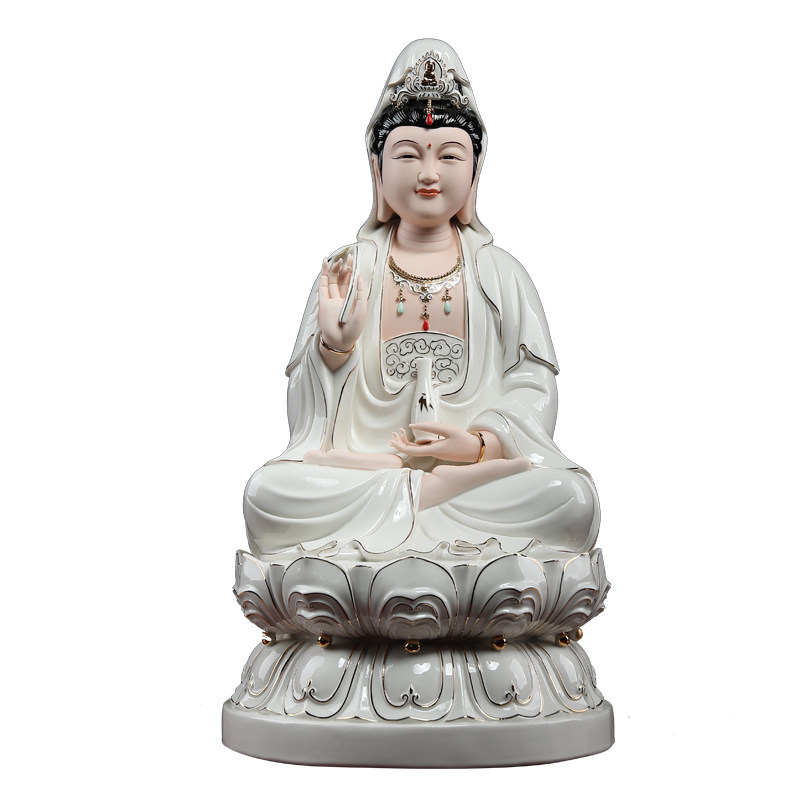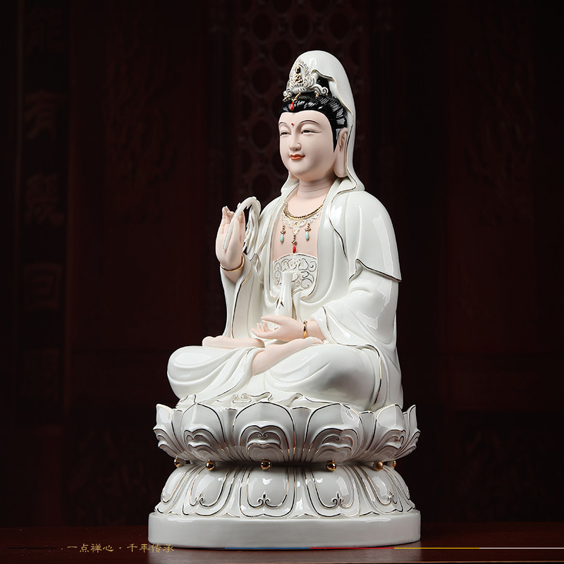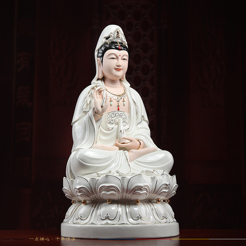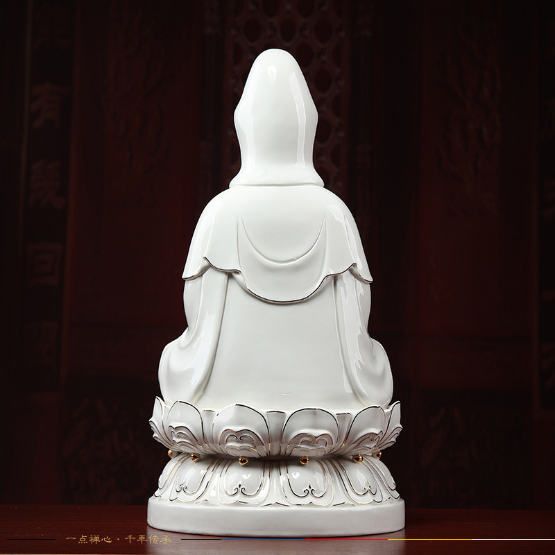 Dai Yu Tang Dehua white porcelain 20 inch sitting lotus Guanyin Buddha statue dedicated to the home ceramic 50cm Guanyin Bodhisattva ornament