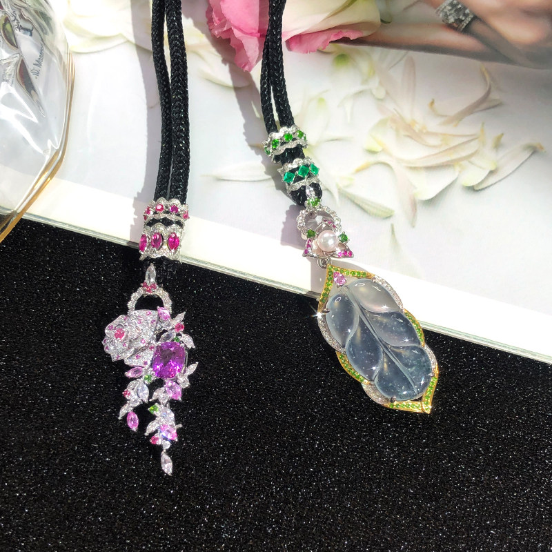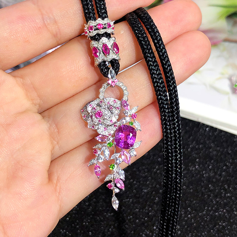 Orchid Jin jewelry high-definition color treasure rope buckle 18K gold diamond inlaid emerald ruby pendant rope
