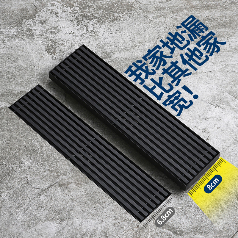 Black 304 stainless steel floor drain elongated square side drain powder room shower room large displacement deodorant
