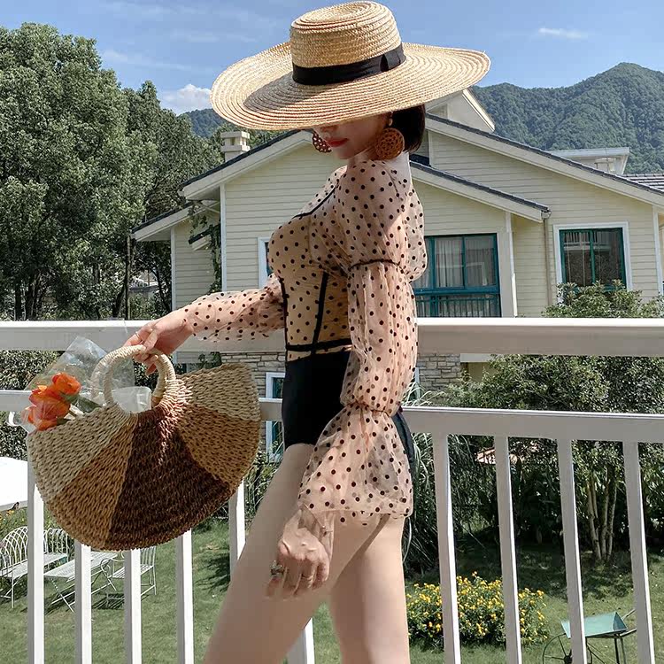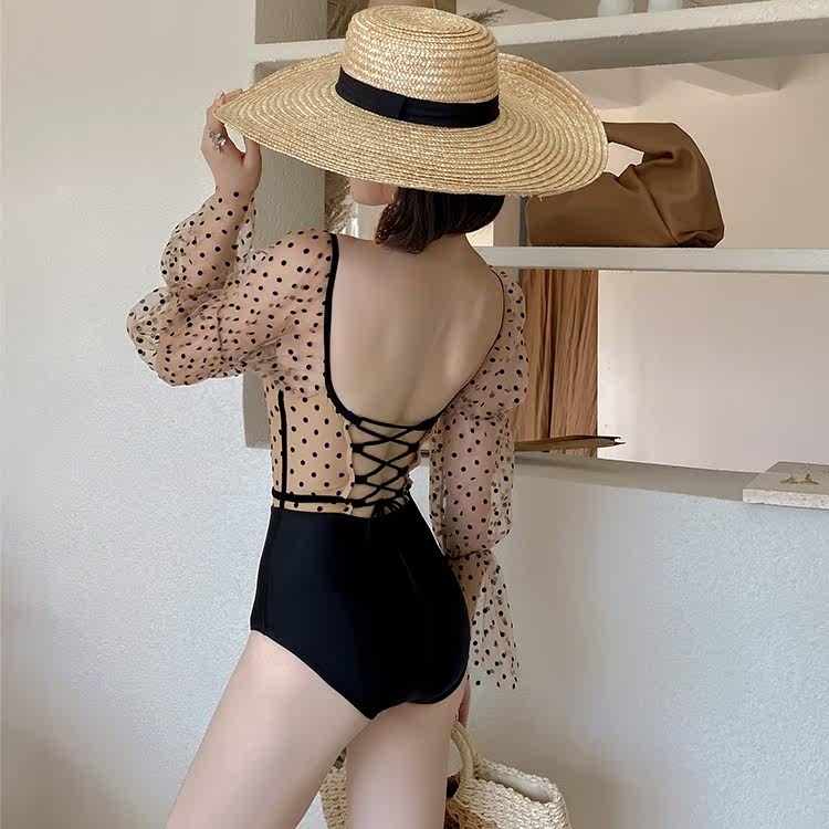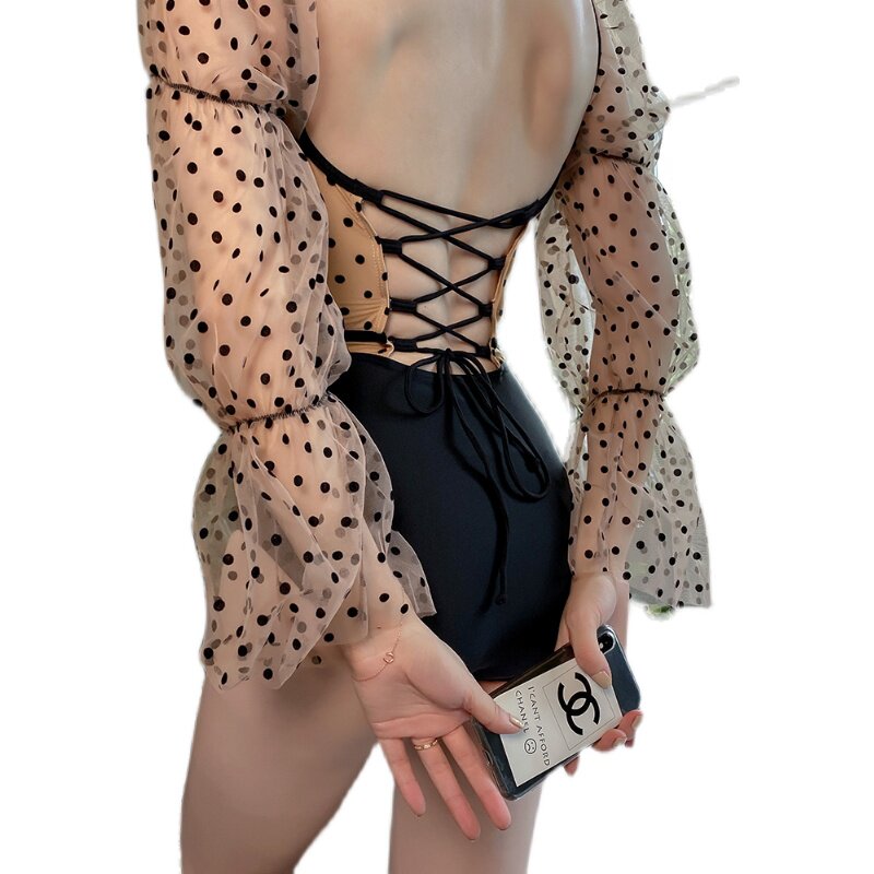 Swimsuit Women 2022 South Korea Ins Wind net Red Dot Long Sleeve Triple Angle Iron to gather even body spa swimsuit