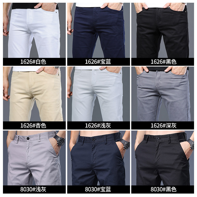 Casual pants male summer slim fit pants cotton elastic body small feet tapered pants male pants white men straight barrel long pants