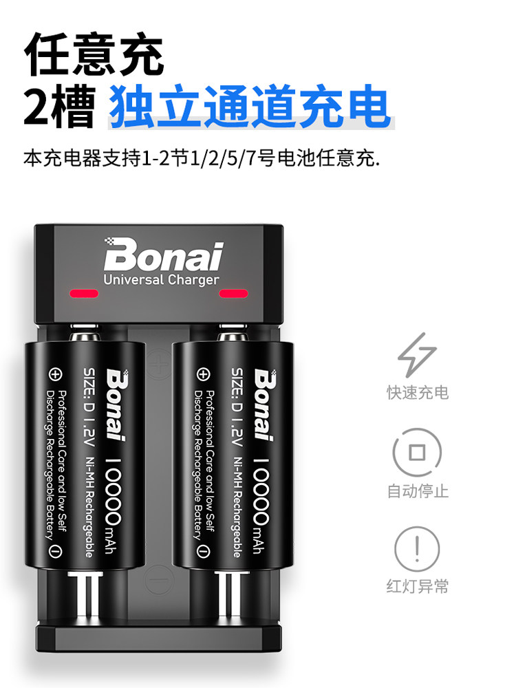 Bonai No. 1 battery 10000 mAh large-capacity D-type No. 1 large household gas stove battery R20 natural liquefied gas stove water heater flashlight 1 2V rechargeable dry battery wholesale