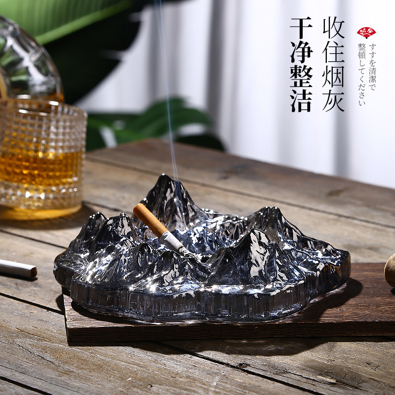 Day-style Fuji Mountain Tobacco Ashtray Crystal Glass Iceberg Snow Mountain Cigar Cylinder Bar Clubhouse Home Creative Grey Dish
