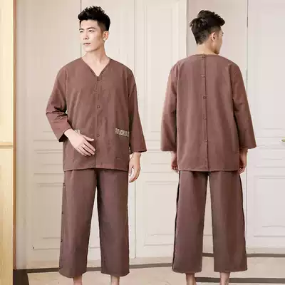 Moxibustion clothing cotton front and back open pants open buckle ear clothing massage clothing cardigan acupuncture physiotherapy clothing open back long version