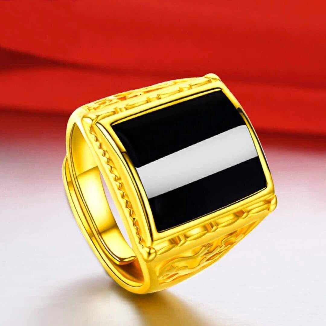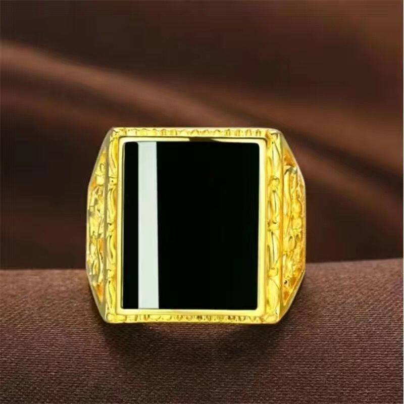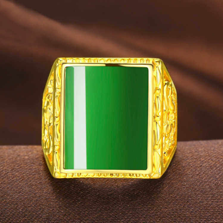 Hong Kong tax exemption 999 genuine gold ring male style bully green jewel inlaid 24k gold Merchants' ring adjustable