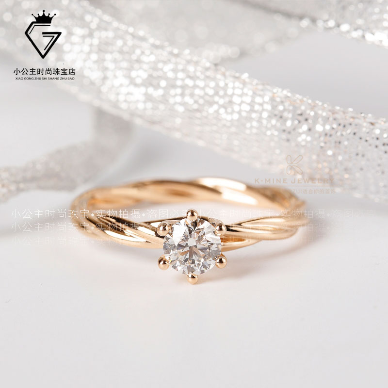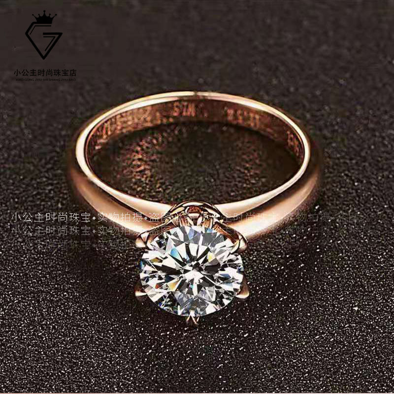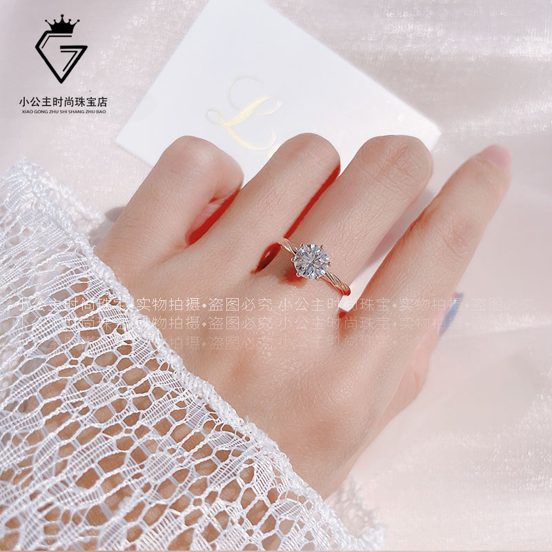 18K Golden Ring Mosandrill Rose Gold Inlaid Classic Six-Claw Ring Opening Vine Mankra Ring Female Wedding