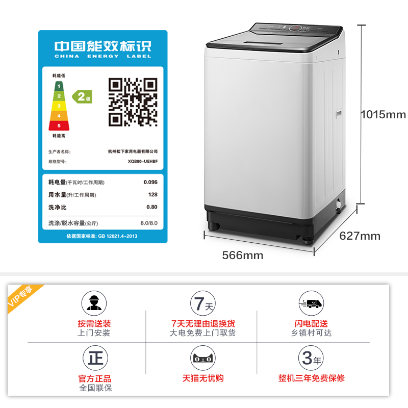Panasonic 8 kg fully automatic household small wave wheel large-capacity intelligent washing machine UEHBF (U8422)