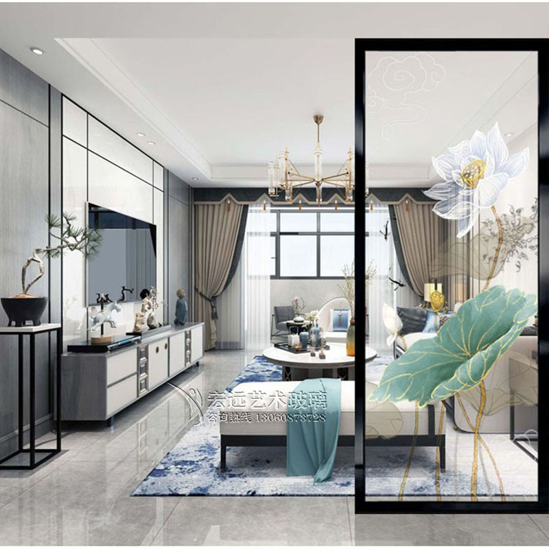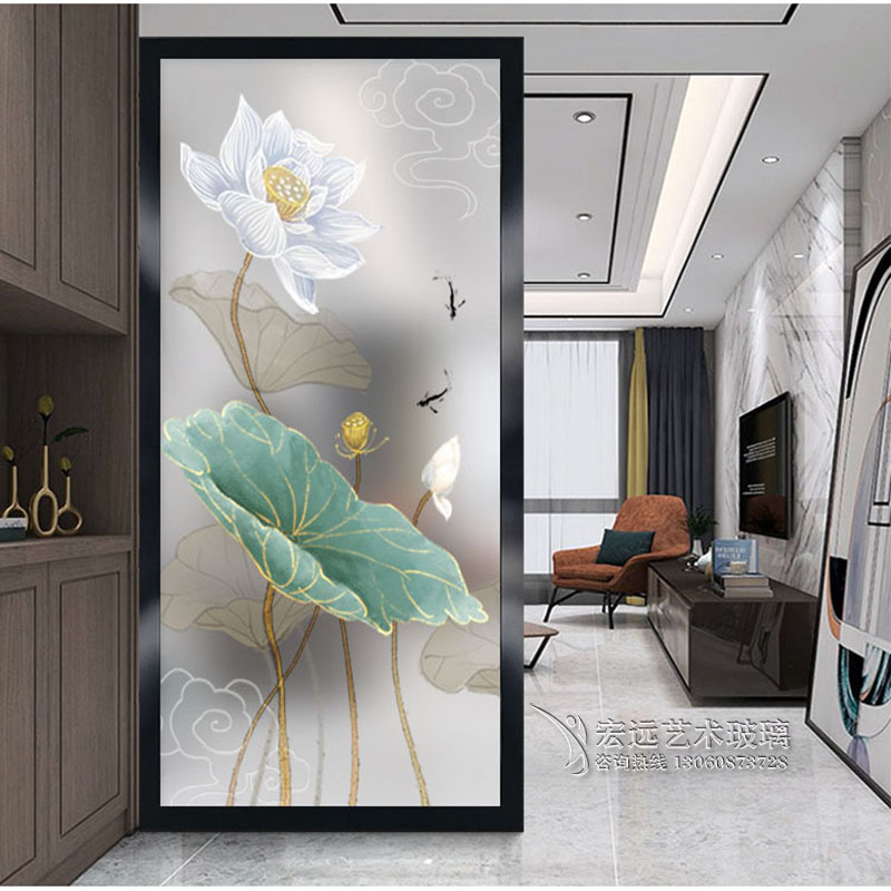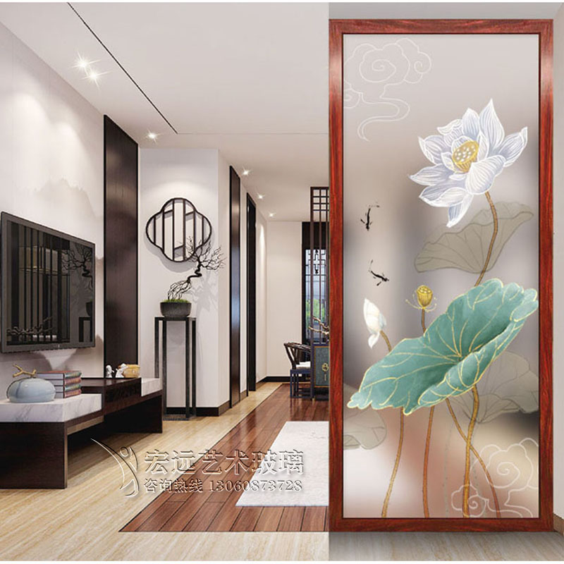Simple art glass partition screen living room frosted glass small apartment custom color glaze decoration double-sided light transmission