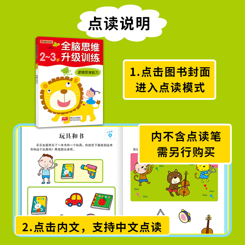 Little Master Reading Pen Supporting Books Whole Brain Thinking Upgrading Training 2-3 Years Old All 2 Books Free Stickers Whole Brain Thinking Upgrading Training 2-3 Years Old Logical Thinking Ability Toddler Educational Intelligence Left and Right Brain Development