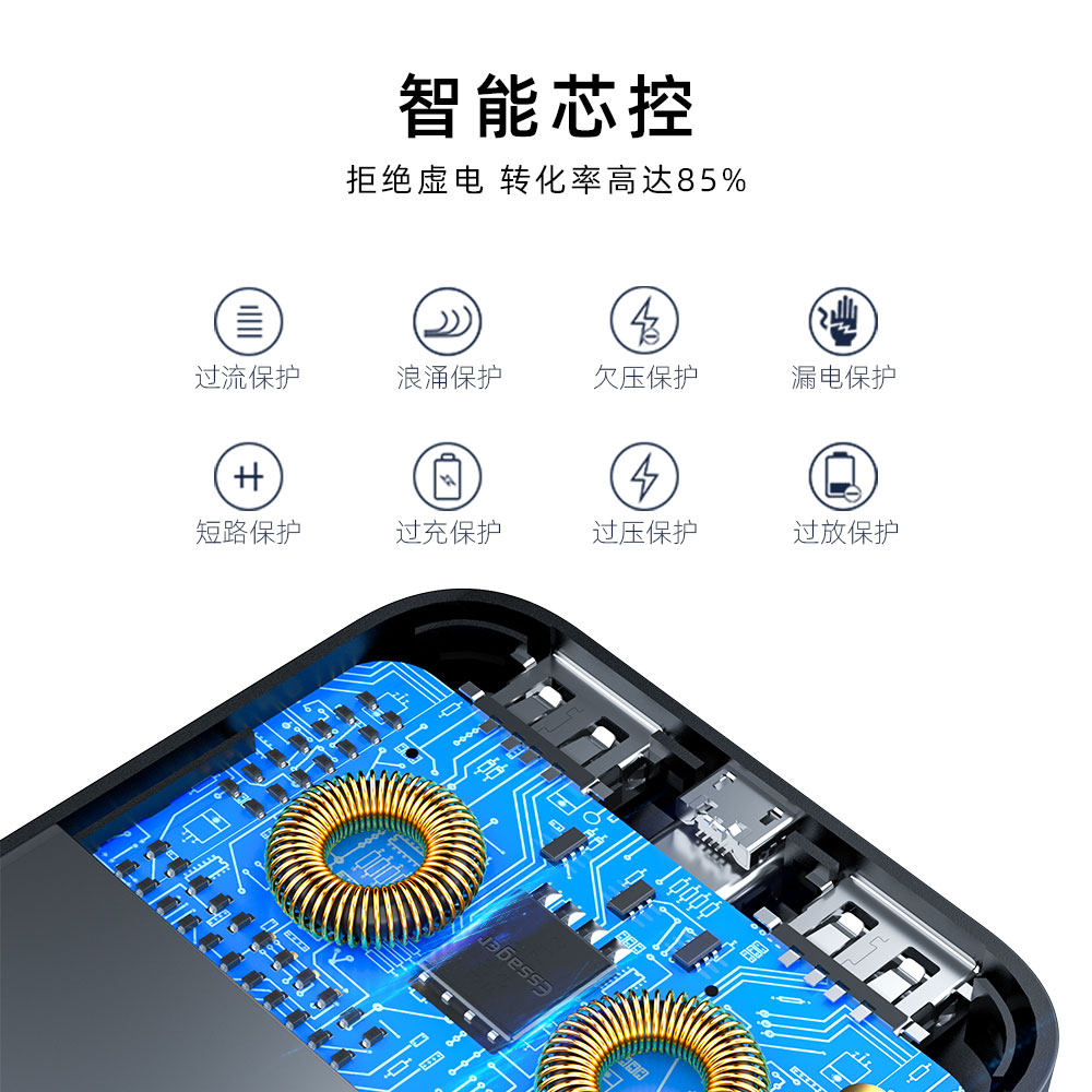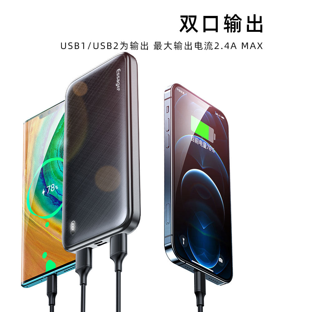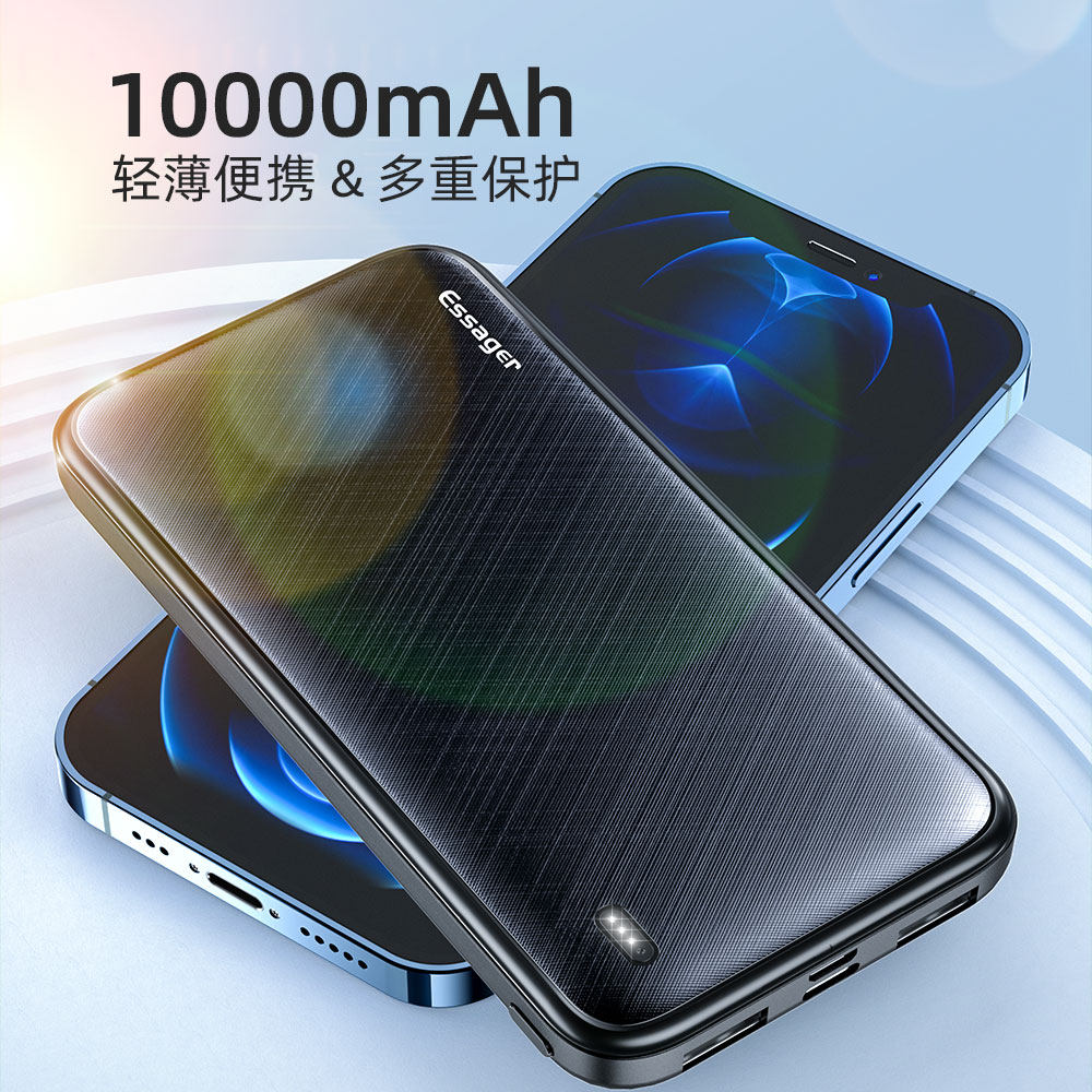 ESSAGER Yiescharging Bao 10000 mAh ultra-thin small ten thousand Large capacity portable mobile power with data line dashed for Apple Huawei Xiaomi Type-C Private Bring Your Own Line