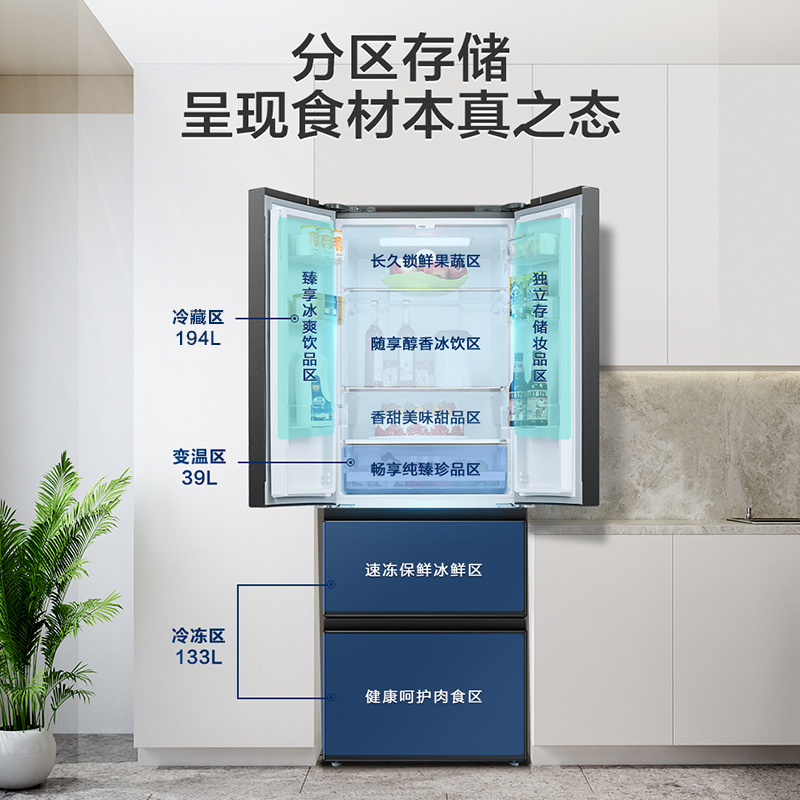 Ultra thin section Mein 366L French style four doors frequency conversion primary energy efficiency air-cooled no frost Home Large capacity Refrigerator Official