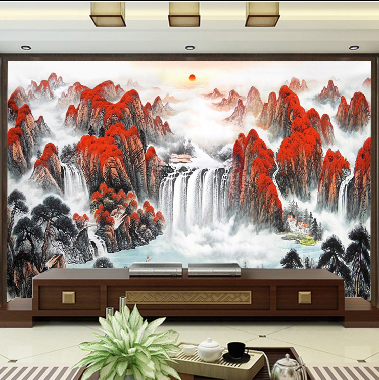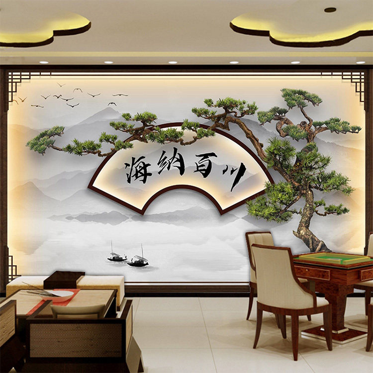 New Chinese Haina Baichuan TV background wall panel Bedroom bamboo wood fiber integrated board Living room Hongyun When the head buckle plate