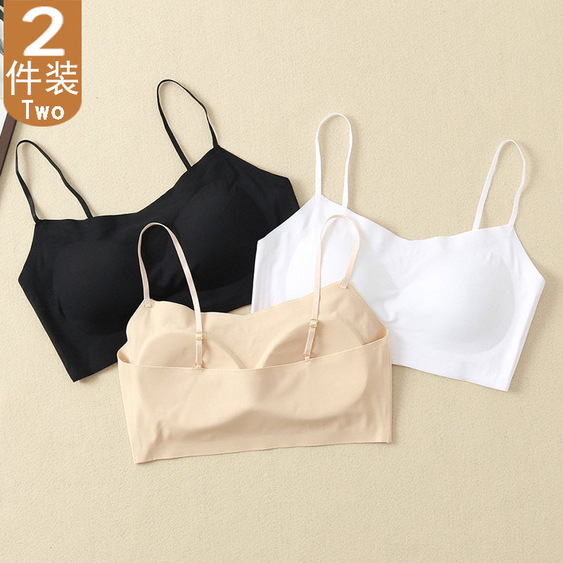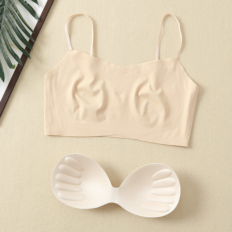 2021 summer women's traceless beautiful back ice silk tube top with chest pad without rims small vest with straps and bottom with large size