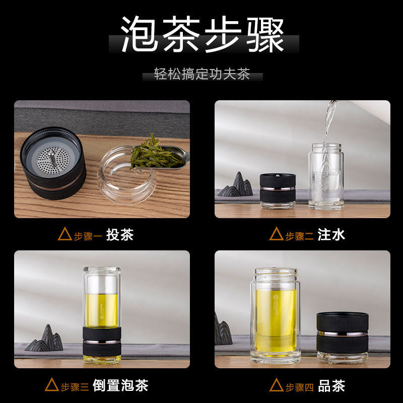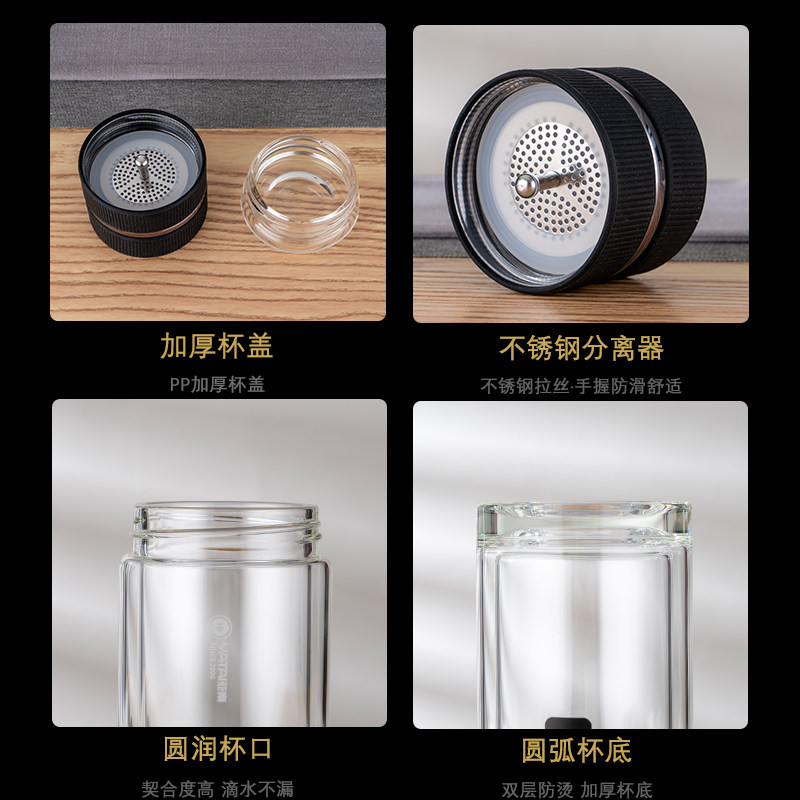 Yatai double layer tea water separation glass mug insulation thickened heat resistant male and female office portable tea water cup customization