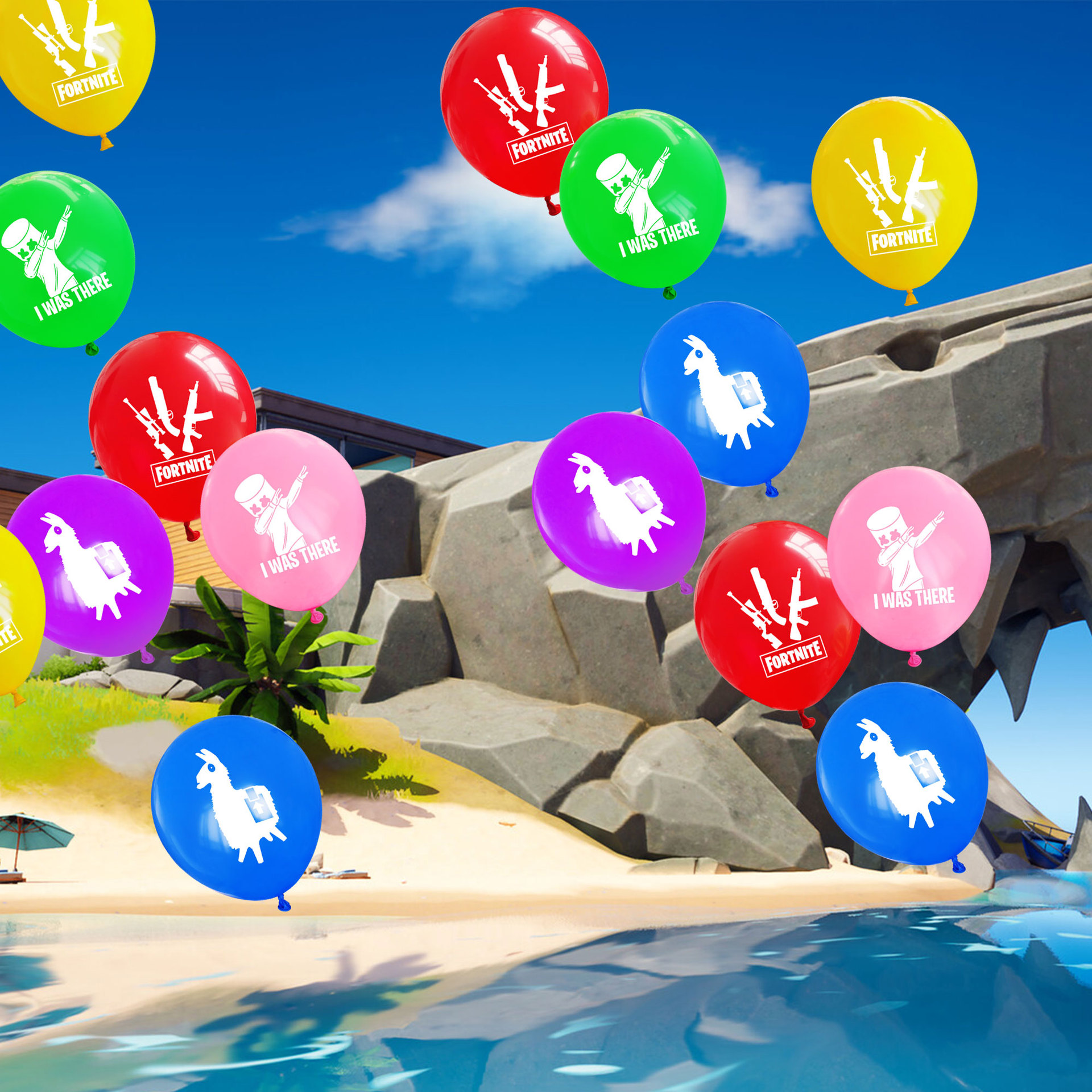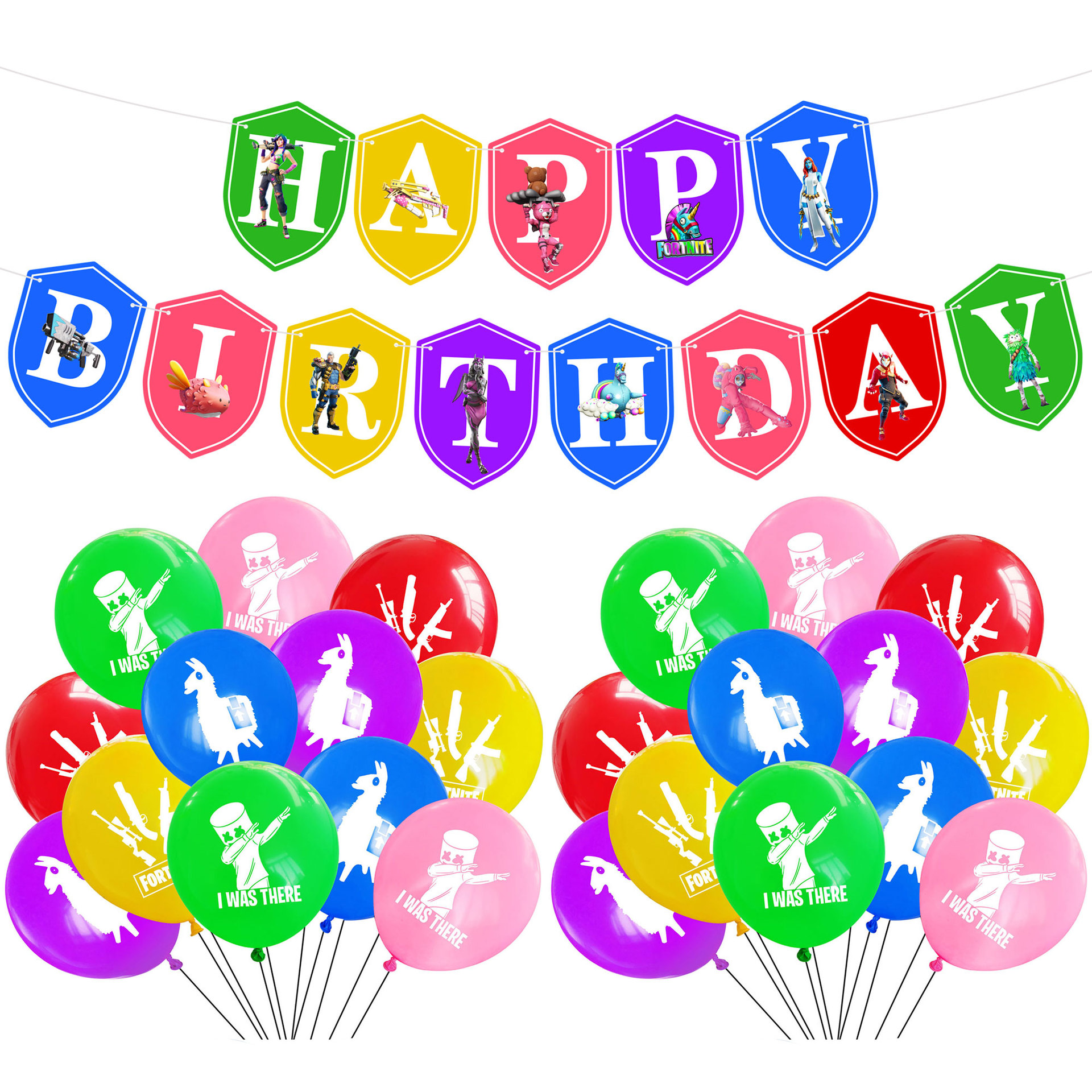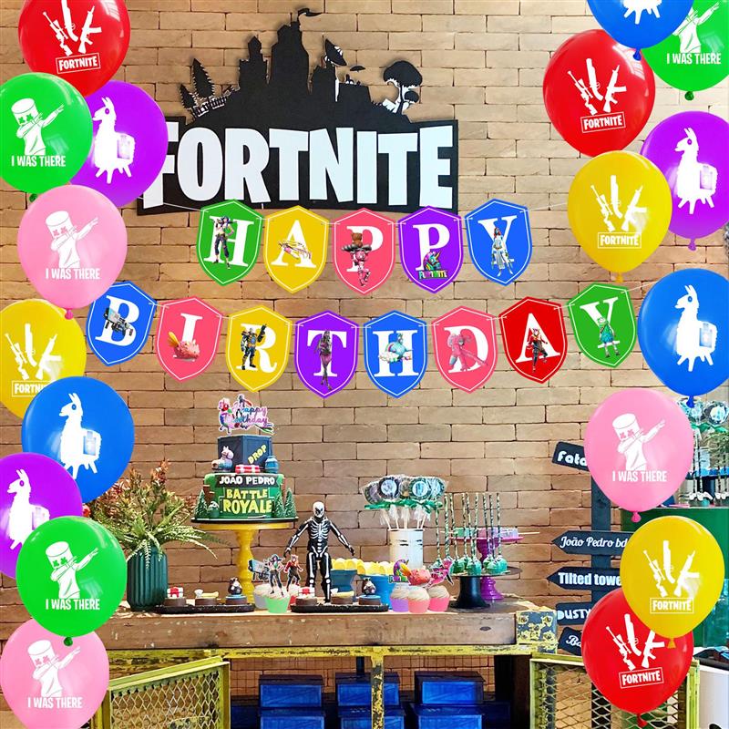 Fortnite full set of Fortnite balloons pull flag pull flag 12 cake inserts big cake inserts cake insert combination 6 mixed color balloons 10 purple balloons 10 yellow balloons 10 blue balloons 10