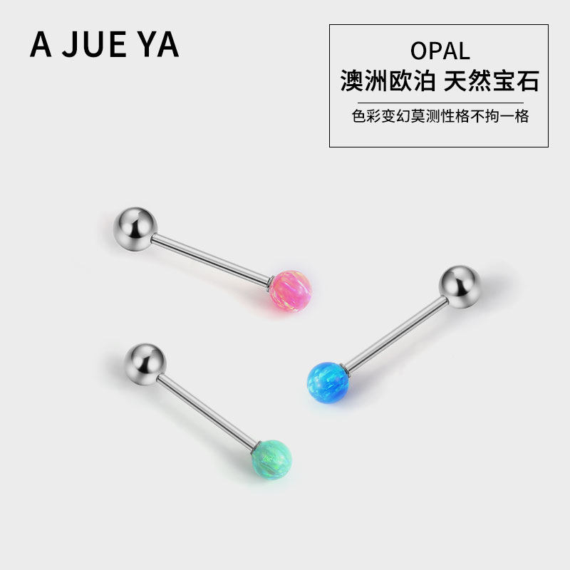 AJueYa perforated jewelry European and American titanium steel hypoallergenic opal tongue nail opal stone single ball tongue ring niche