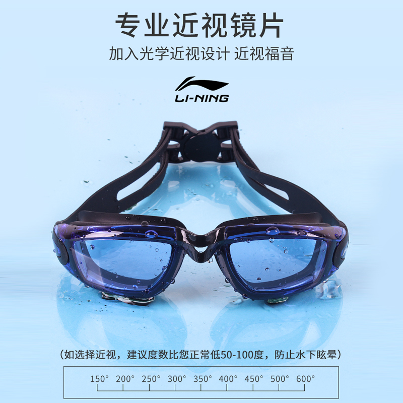 Li Ning swimming goggles waterproof and anti-fog high-definition swimming glasses myopia optional men's and women's diving swimming cap swimming goggles set equipment