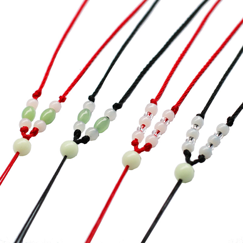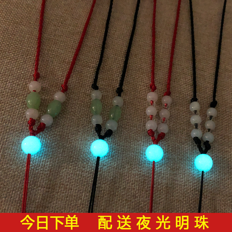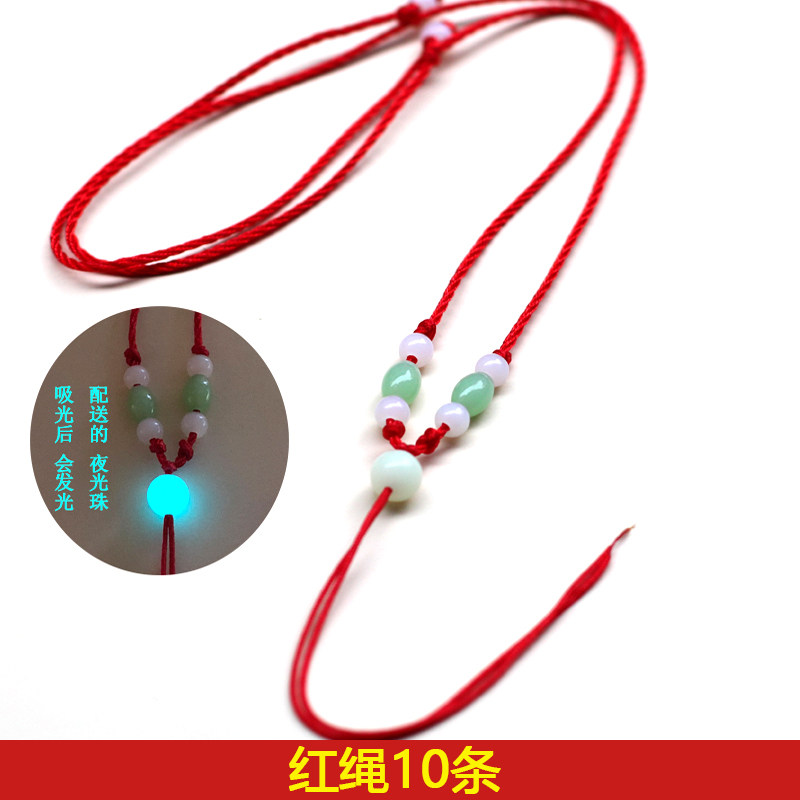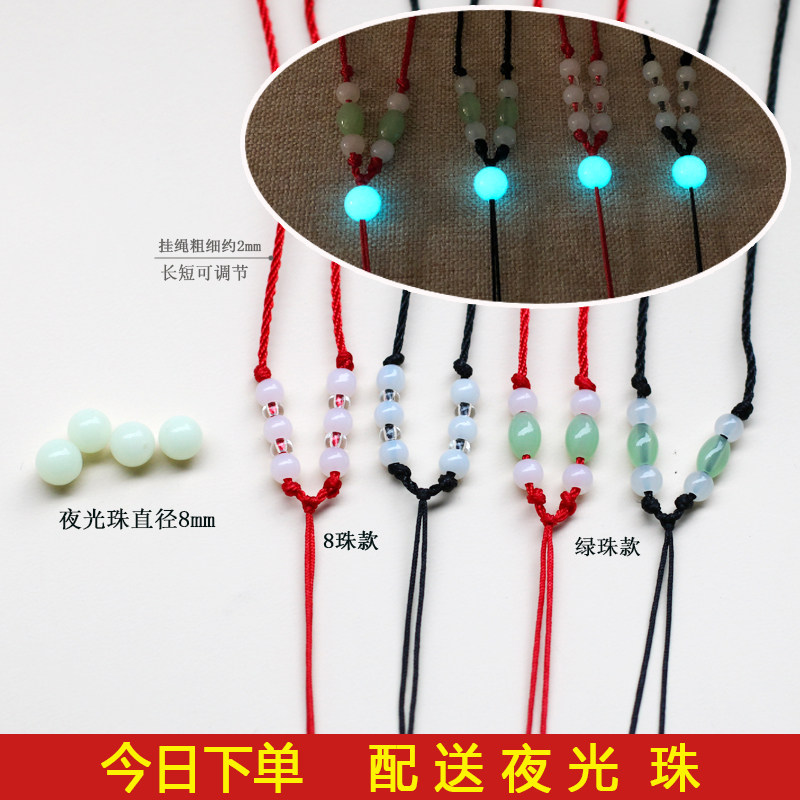Emerald jade pendant pendant hanging rope red rope thin section handwoven necklace rope luminous pearl hanging neck hanging pendant rope male and female