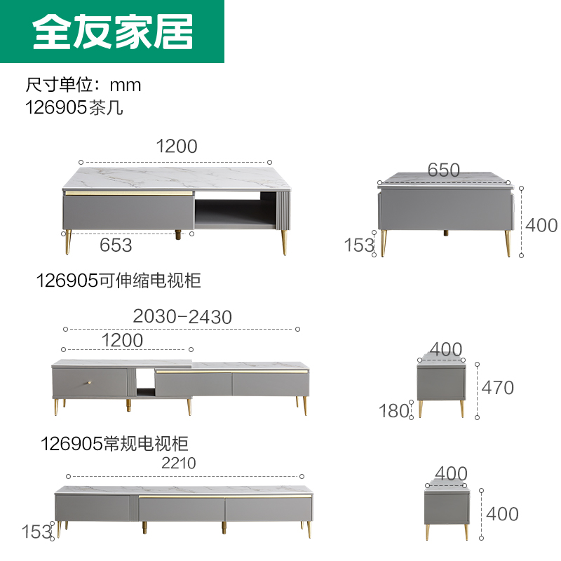 Full Friend Furniture Light Lavish Tea Table TV Cabinet Combo High-end Home Living Room Tempered Glass TV Cabinet 126905