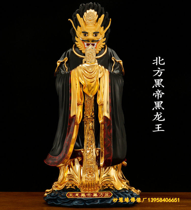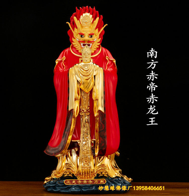 Five Emperors King 19 Inch Pure Copper-Cure Gold Painted East and South West China Railway Station Dragon King Taoist Statue Pendulum Dragon God