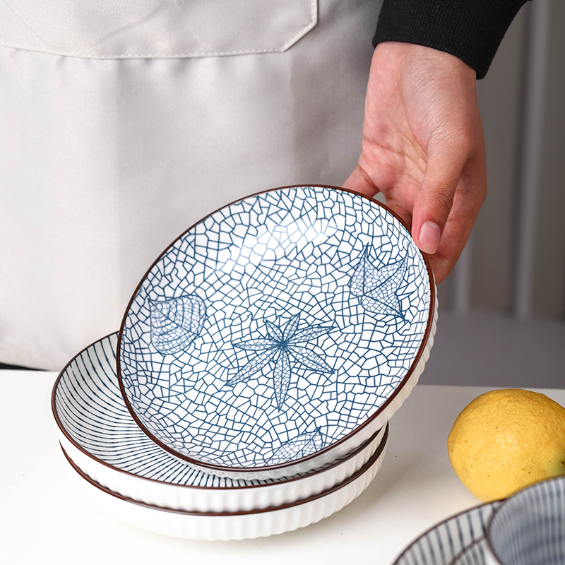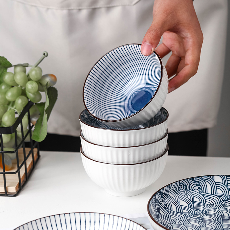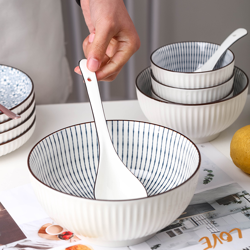 Dish set Household underglaze color vertical stripe rice bowl Korean ins wind bowl Japanese dish instant noodle bowl combination