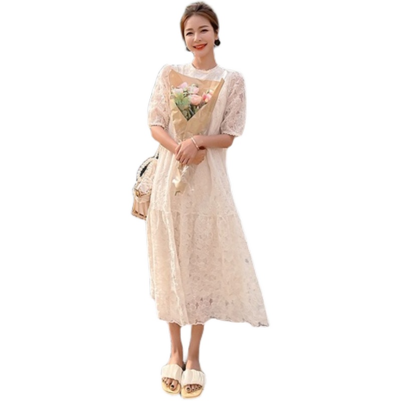 Valley Seven GUQIQI Summer New Sunflower Embroidered Floral Style Round Collar White Lace Light Lavish Fairy Skirt