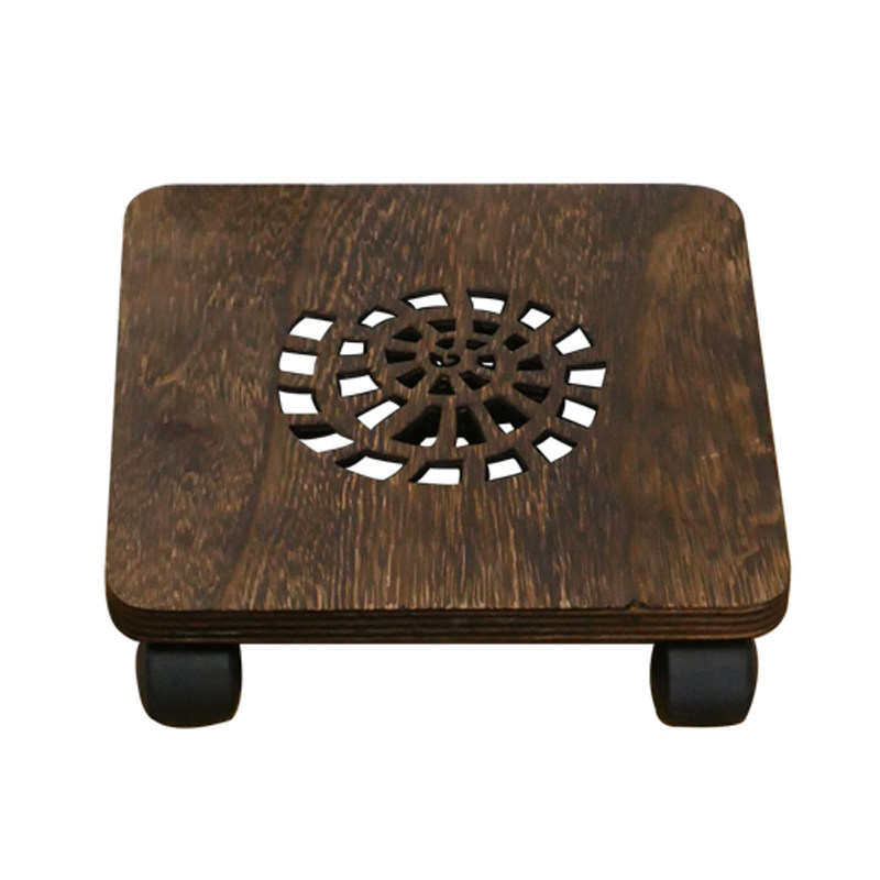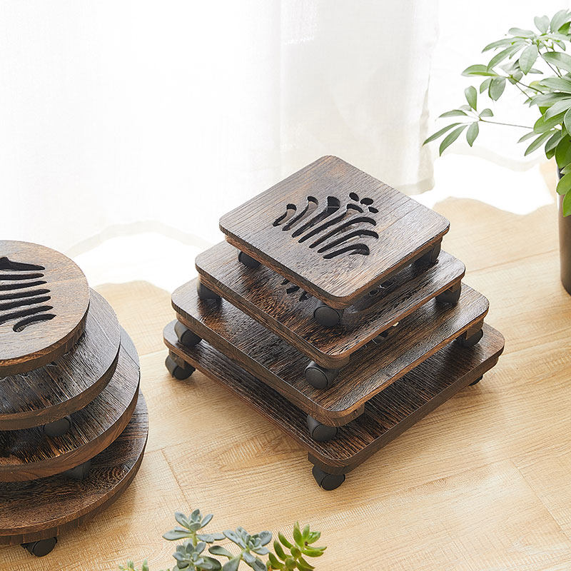 Japan-style solid wood flower pot base tray universal wheel thickened with roller tung wood frame log made of old removable flower pan-Taobao