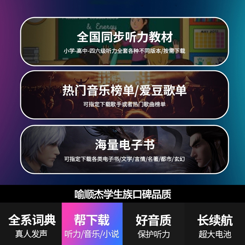 Music Version (no screen button) Mini version (20-inch button with English-Chinese dictionary) Deluxe version (20-inch touch screen with English-Chinese Dictionary) Ultimate version