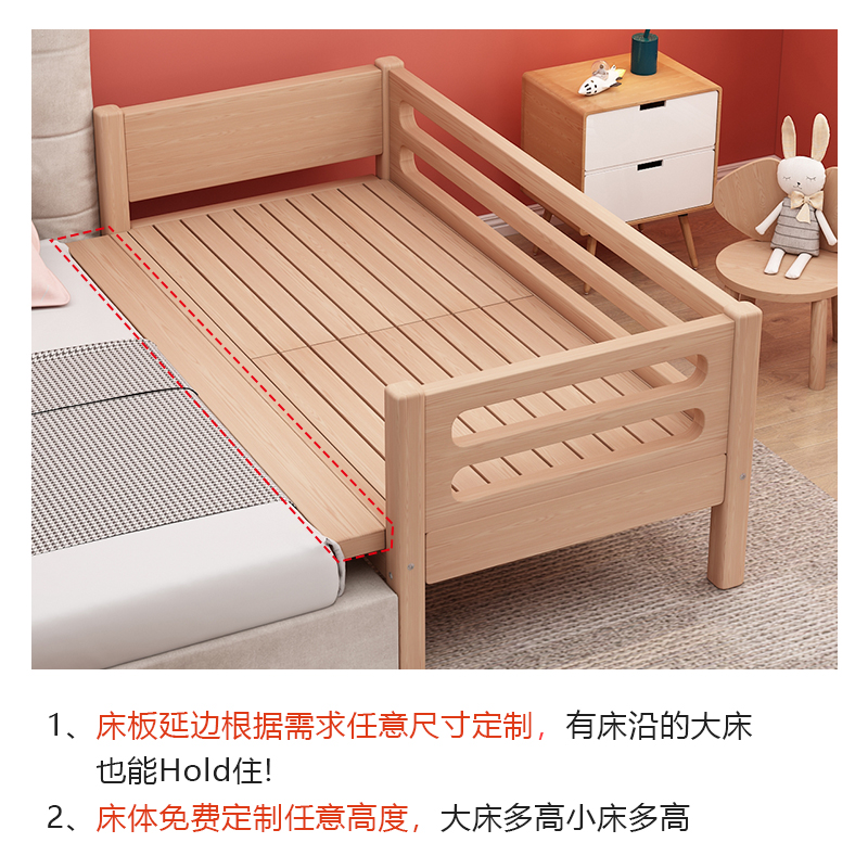 Solid wood children's bed splicing bed Baby bed splicing large bed Widened bed Single Beech boy baby bed Side bed