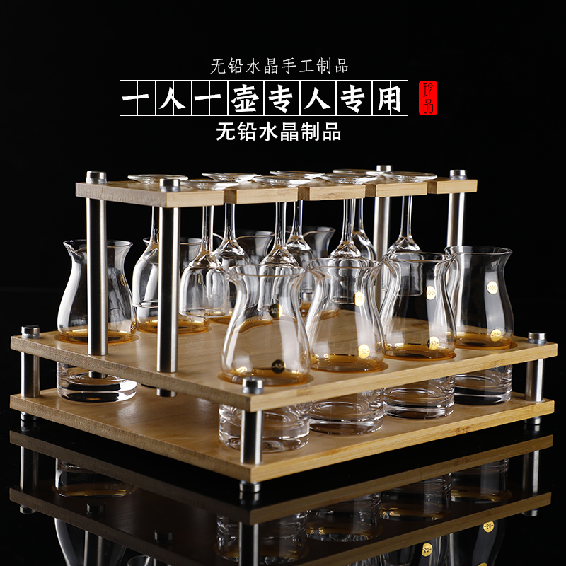Chinese liquor cup storage bamboo and wood cup holder creative family reunion wine rack step by step rise cup shelf home decoration