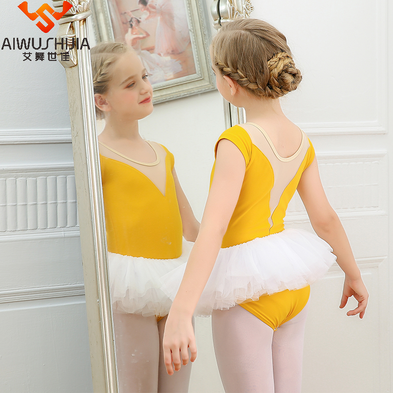 Dance clothes children's women's body Children's Day performance clothes practice clothes new yellow cotton children's dance clothes