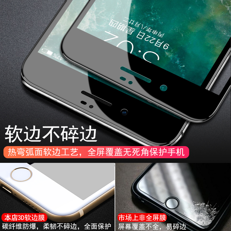 Applicable apple 8plus Soft edge steel film iphone7 fullscreen covering mobile phone protective film i7i8se2 generation eye protection against blue light anti-fall film Apple 6plus full package anti-peeping film 6s