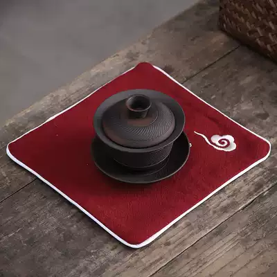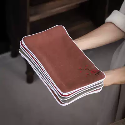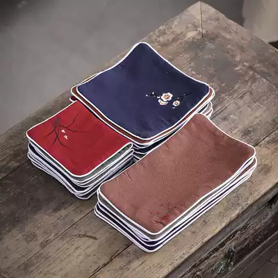 Cotton linen tea towel high-grade tea cloth Zen hand-painted embroidery water-absorbing thick tea table rag tea table flag custom tablecloth