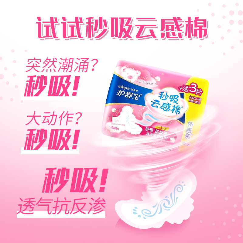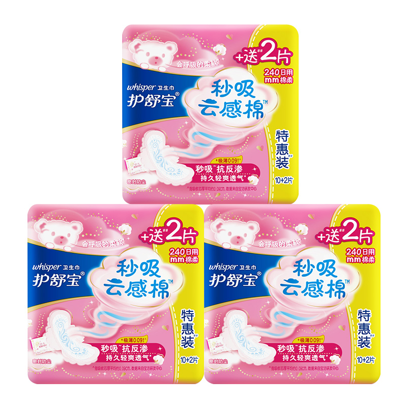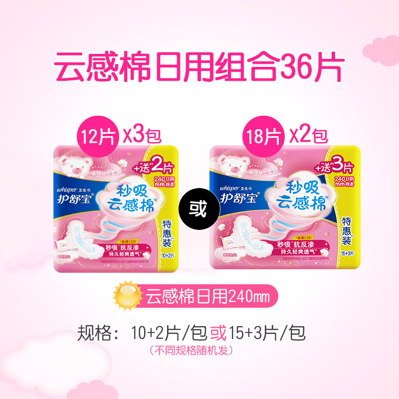 Hushubao second cloud-absorbing cotton daily sanitary napkin 240mm 36 pieces of cotton soft aunt towel hot sale official website