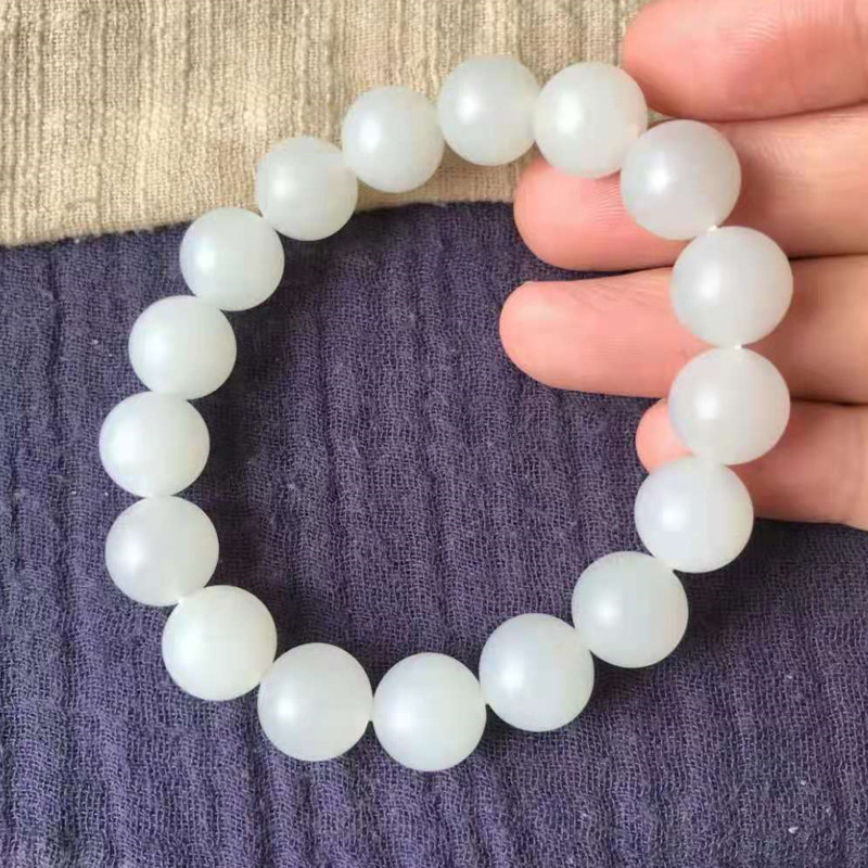 And Tian Jade Professional Live White Jade Round Pearl Handmade Strings with a full circle and a direct 12 mm